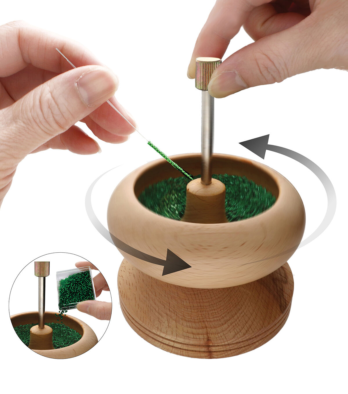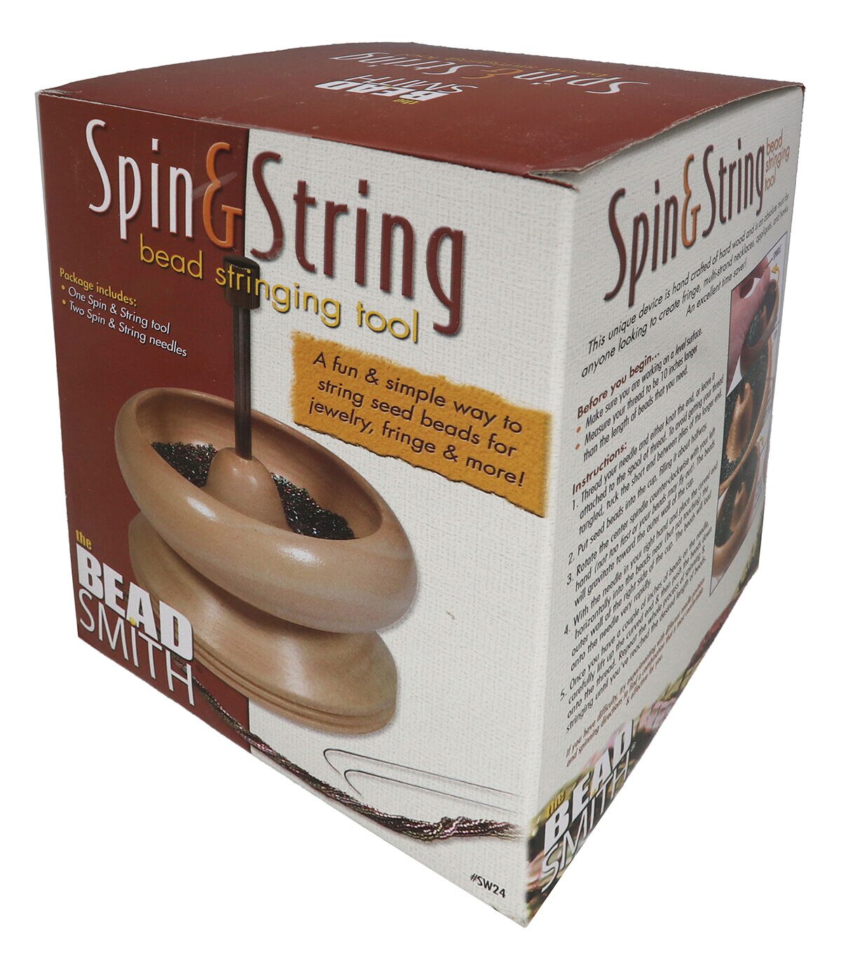 Spin & String – Bead Stringing Wooden Spinning Wheel with 2 Needles – String Seed Beads for Jewelry, Fringe and DIY arts & crafts
