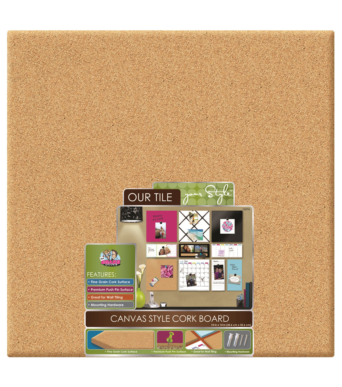 Design your own attractive wall display at home using The Board Dudes Unframed Canvas Style Cork Board. This durable canvas board is unframed and made of self-healing, fine-grain cork. You can use pushpins, staples or tacks to pin schedules, pictures, quotes, lists and much more. Team it with other unframed cork tiles for an impressive display. This pack includes a corkboard and mounting hardware.