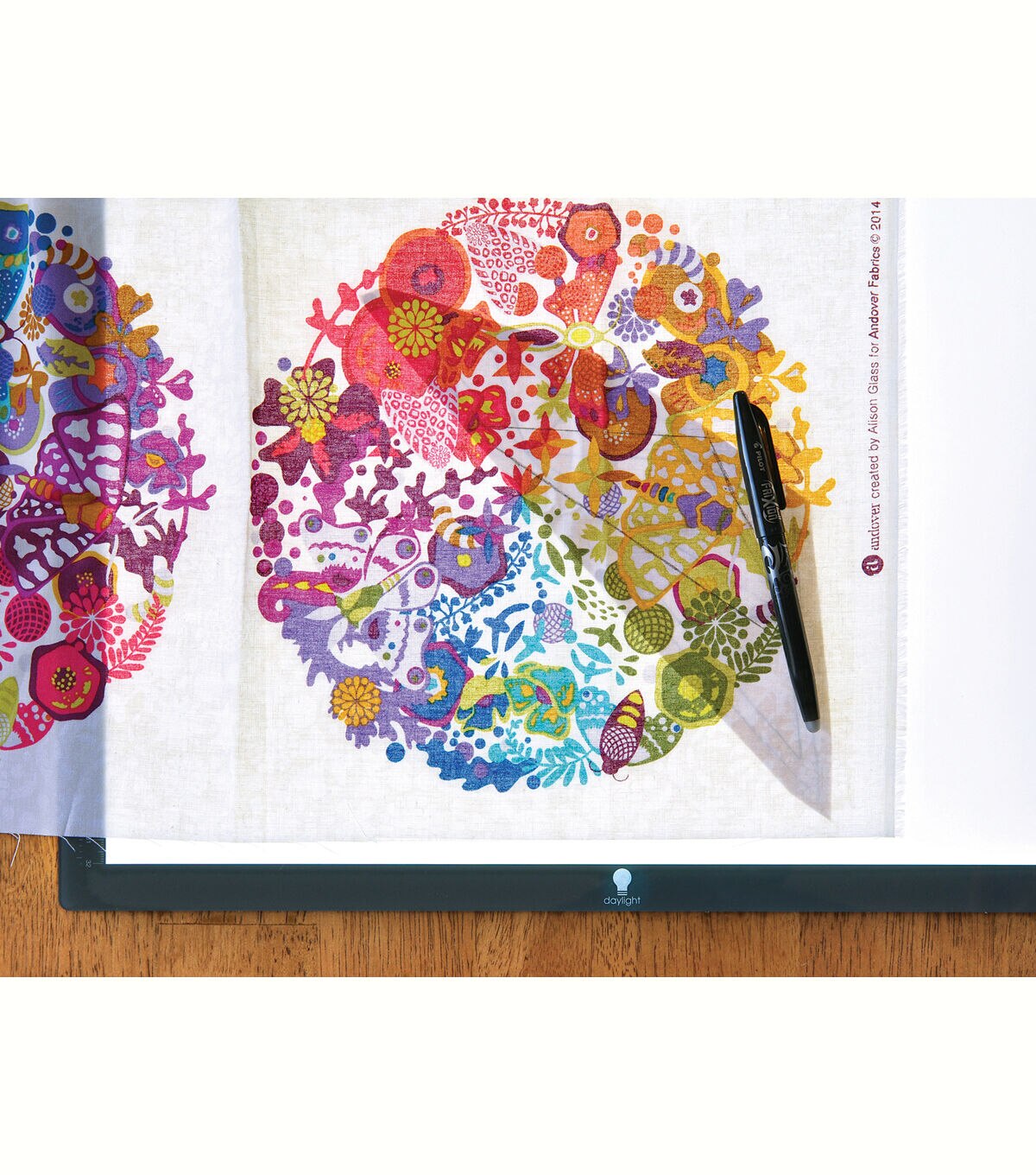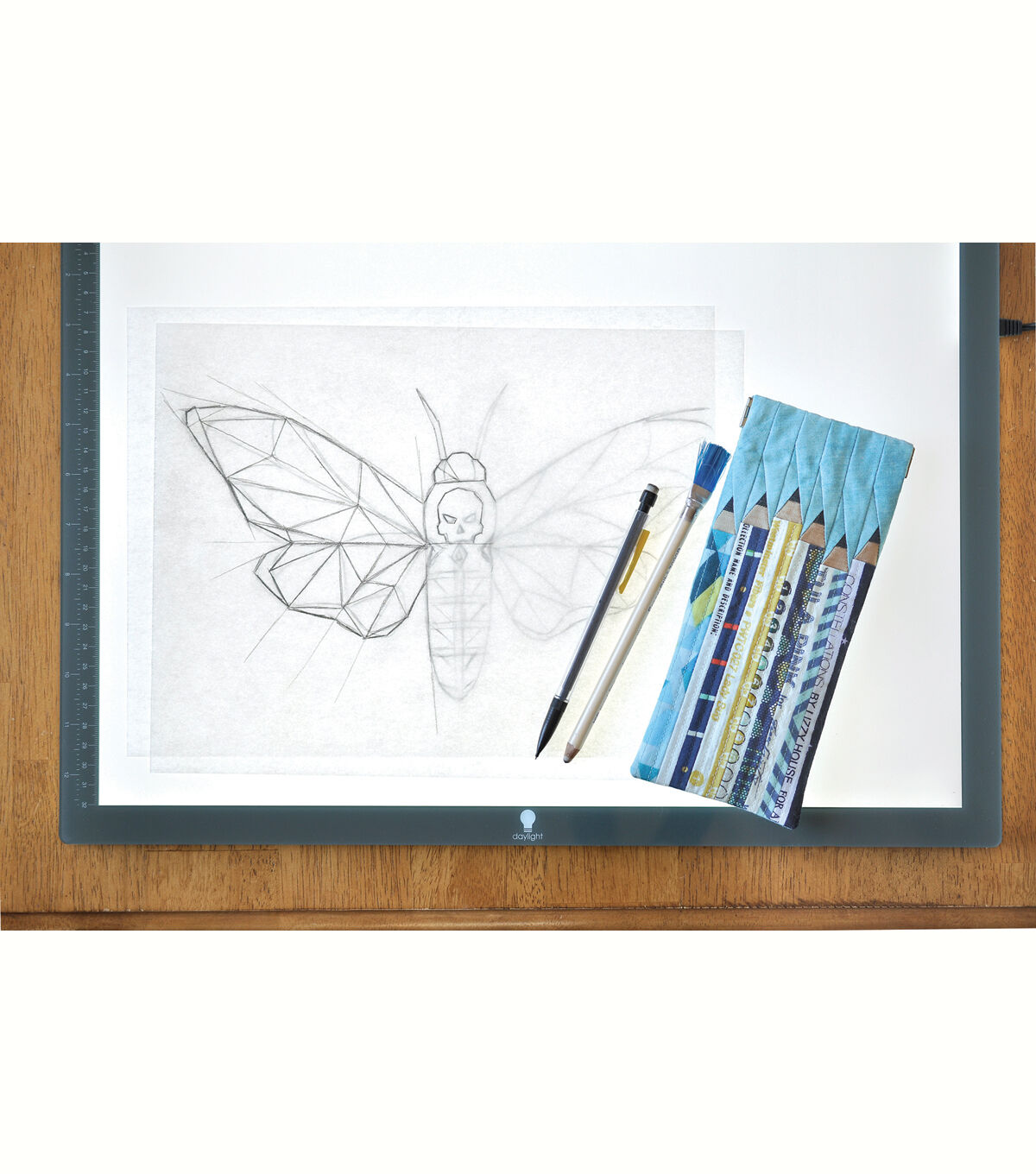 Ultra bright, ultra slim, ultra light, the Daylight Wafer 2 lightbox is your must have tool for tracing, on paper or fabric. LED lightbox for an even brightness from edge to edge, the light is dimmable to suit paper weight and fabric thickness and include a handy marking guide on the sides (inches and centimetres).