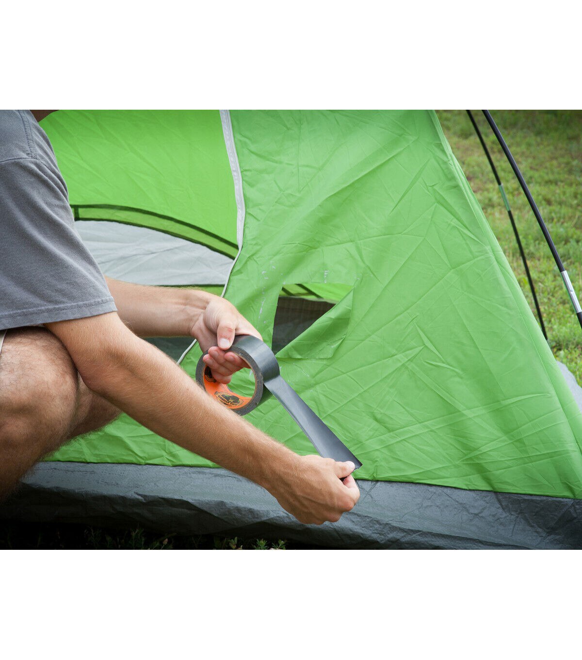 This duct tape is great for projects and repairs both indoors and out. Tape sticks to smooth, rough and uneven surfaces, including wood, stone, stucco, brick, metal and vinyl. This package contains one 12 yard roll of 1.88 inch wide tape. Made in USA.