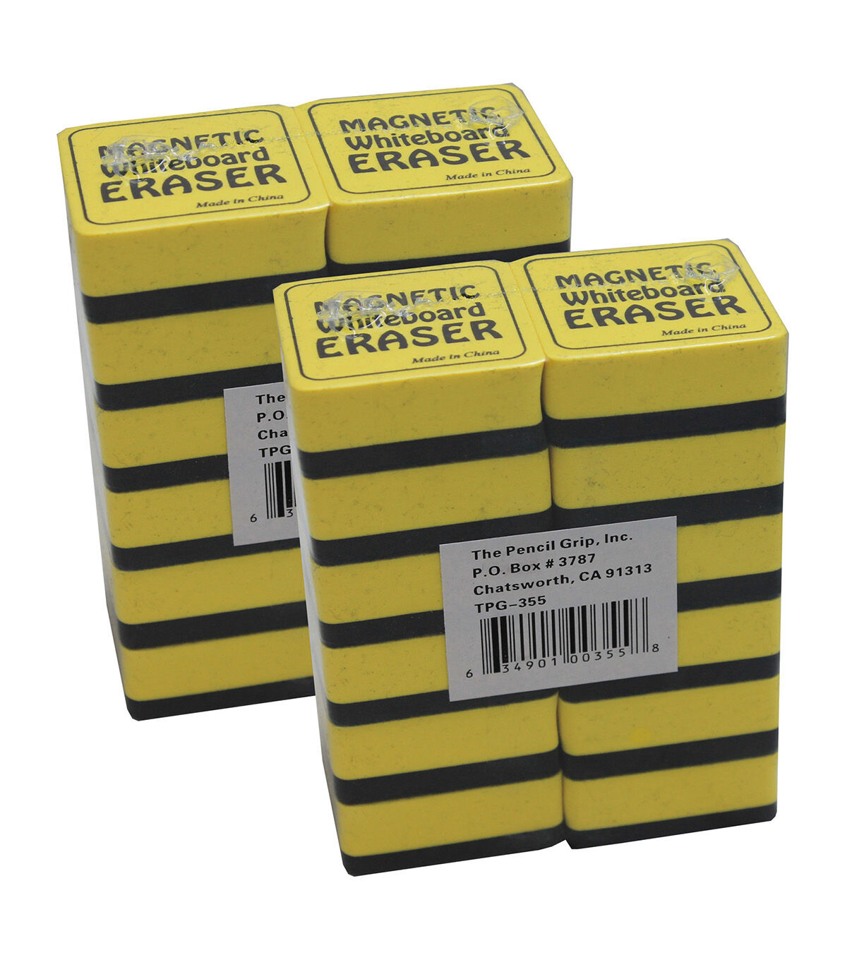 The Pencil Grip, Inc. Magnetic Whiteboard Erasers adhere to any metal-backed whiteboard or steel surface for quick storage and access. Compact shape of these whiteboard erasers is sized perfect for small hands and for lapboards. Durable construction cleans easily with just soap and water for long-lasting use. The soft material effectively removes dry-eraser ink without harming the surface of your board.