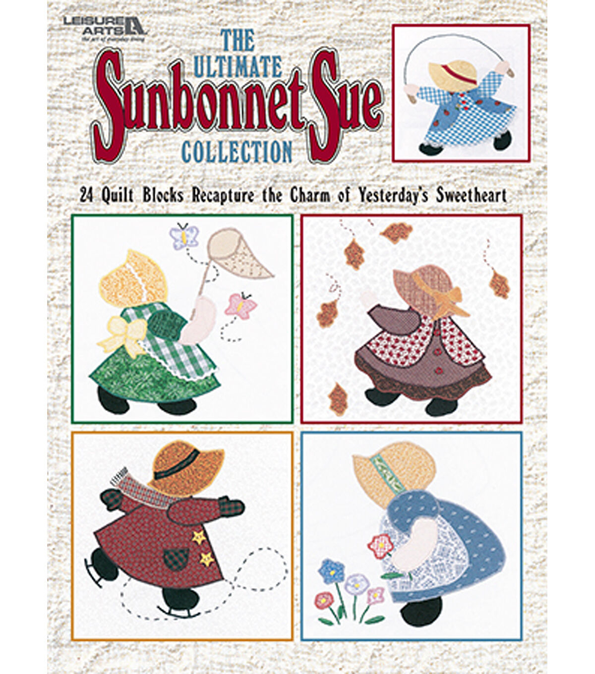 - Appliques include a Four Seasons Wall Hanging, a Baby Sue Quilt, a Sunbonnet Sue Quilt, and an Antique Sue Quilt.