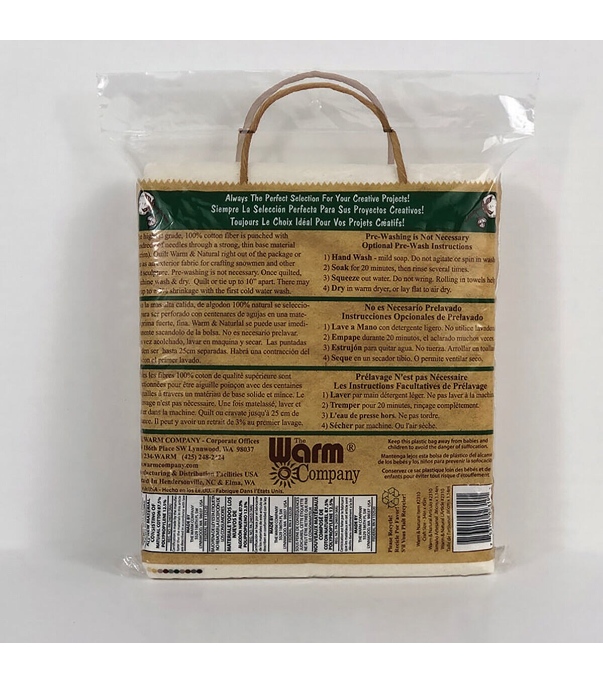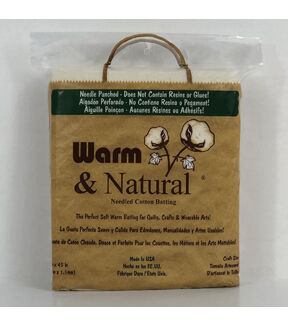 Get a firm, thin base for your crafting and quilting projects with the Warm & Natural Cotton Batting Craft Size 34'' x 45''. You can use this extra soft cotton batting to make a variety of craft projects including wall hangings, wearable arts, soft sculptures and more. Made from 87.5% natural cotton, 12.5% polypropylene scrim, this batting is needle punched to prevent shifting, bunching and tearing. Plus, this resin and glue-free batting does not beard or creep through even after several washes.