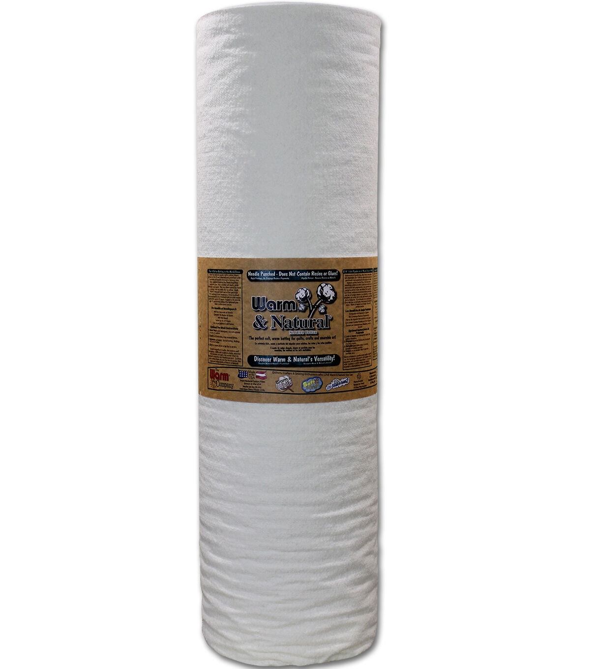Ideal for your quilting and other fabric projects, The Warm Company Warm & Natural Cotton Batting does not separate, bunch or beard. This 100-% USA grown cotton is punched with hundreds of needles through a thin base material (polymer fibers) to prevent tearing, shifting, migrating or creeping through the cover fabric. This needled batting's flexibility makes it ideal for both inside and outside use. Its fibers are held together without glue so a quilting needle easily glides through this cotton batting. It can also be used as an exterior fabric and for quilting up to 10 inches apart. Easy to dye, your fabric will cling to the batting while quilting.