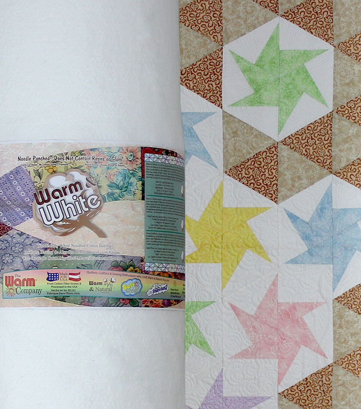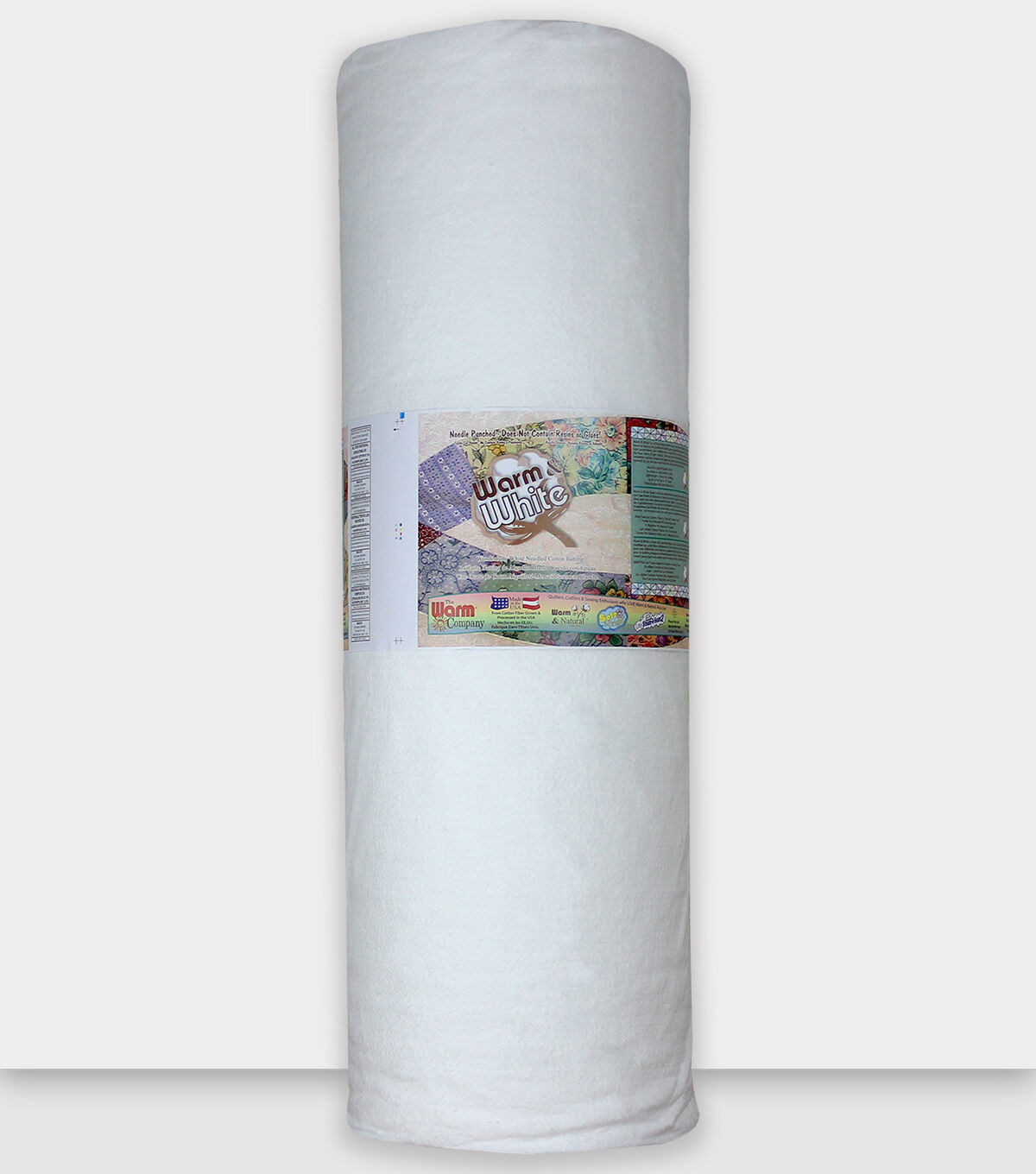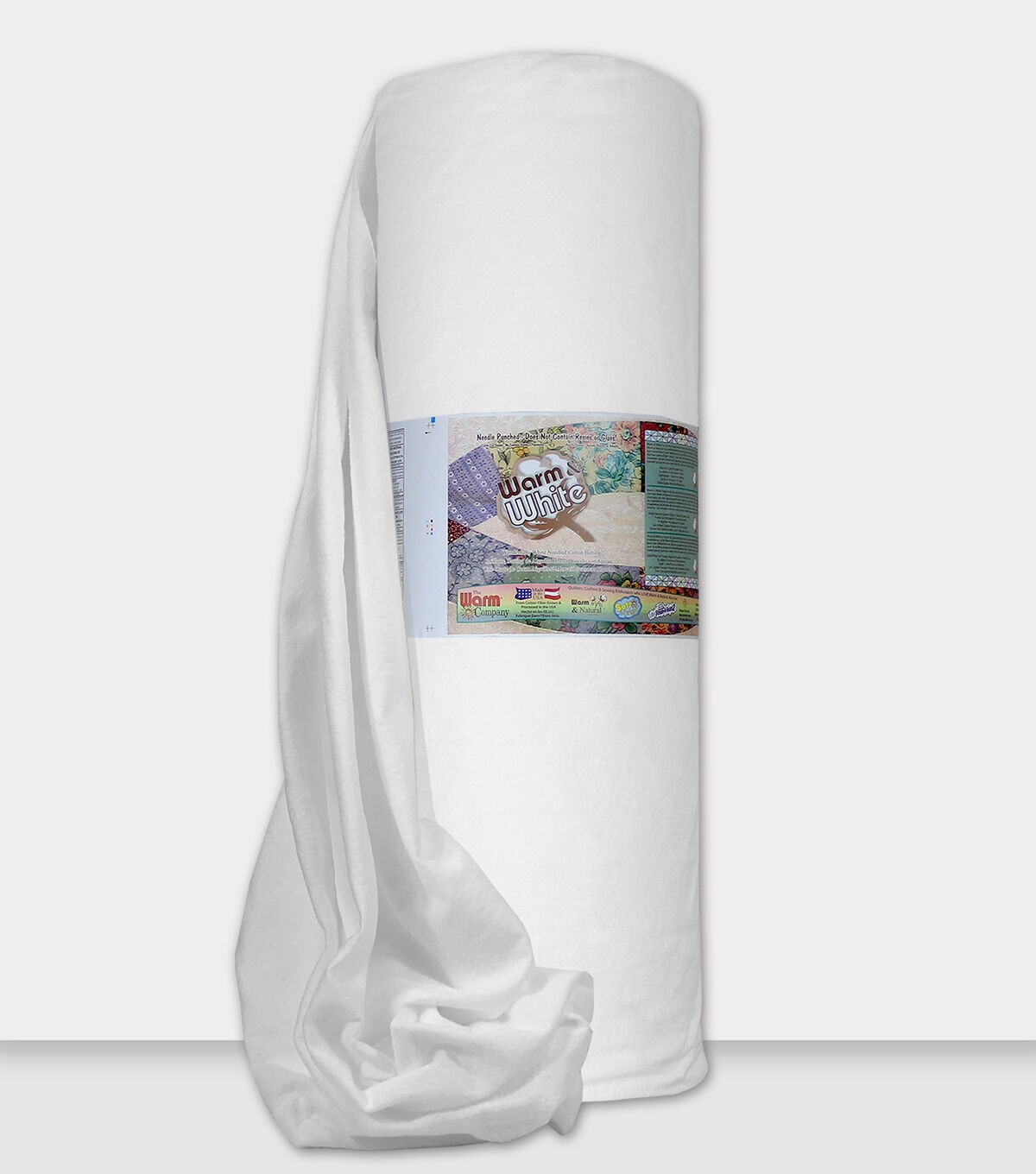Use the Warm & White Cotton Batting Queen Size for quilting projects that involve soft pastels, vibrant whites and tone-on-tone fabrics. This needle punched cotton batting does not creep through its outer fabric, giving your projects a smooth and uniform appearance. Plus, this resin and glue-free fabric does not beard, bunch, hoop or hang even after several washes. It prevents migration, shifting and tearing of your quilts, giving them a longer life. The low-loft batting is also easy to needle.