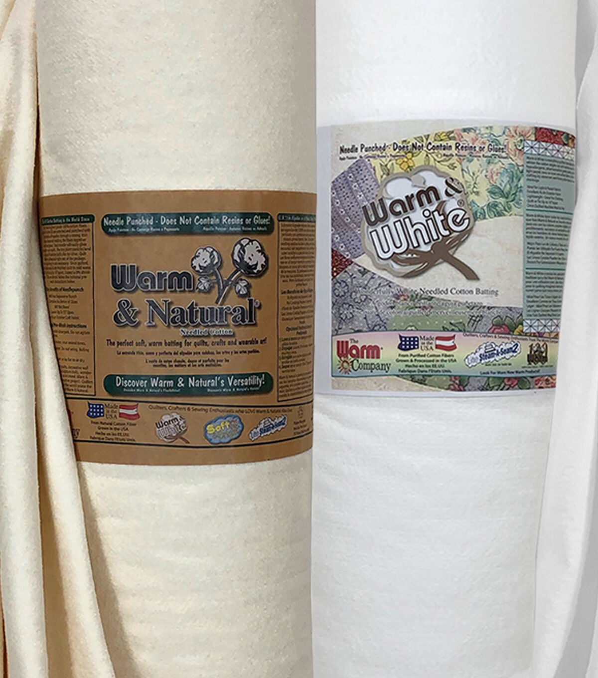 Together for a Limited Time Only at JOANN.com! One Warm & Natural 90” x 20 yard roll + one Warm & White 90” x 20 yard roll equals 40 yards of true love for your favorite quilter - even if that’s you! Warm & Natural is the favorite with so many benefits including 1) the ability to leave up to 10” between stitches or ties for a fast finish, 2) No pre-wash! Once quilted, machine wash & dry, and 3) Needled without glues or resins plus so much more! Warm & White offers all these benefits + the purified cotton is hypo-allergenic and bright white to show off your light colored fabrics and tone-on-tones! Get them together for a limited time, special promotion, available only at JOANN.com! Products are unable to be shipped to APO/FPO or PO Boxes