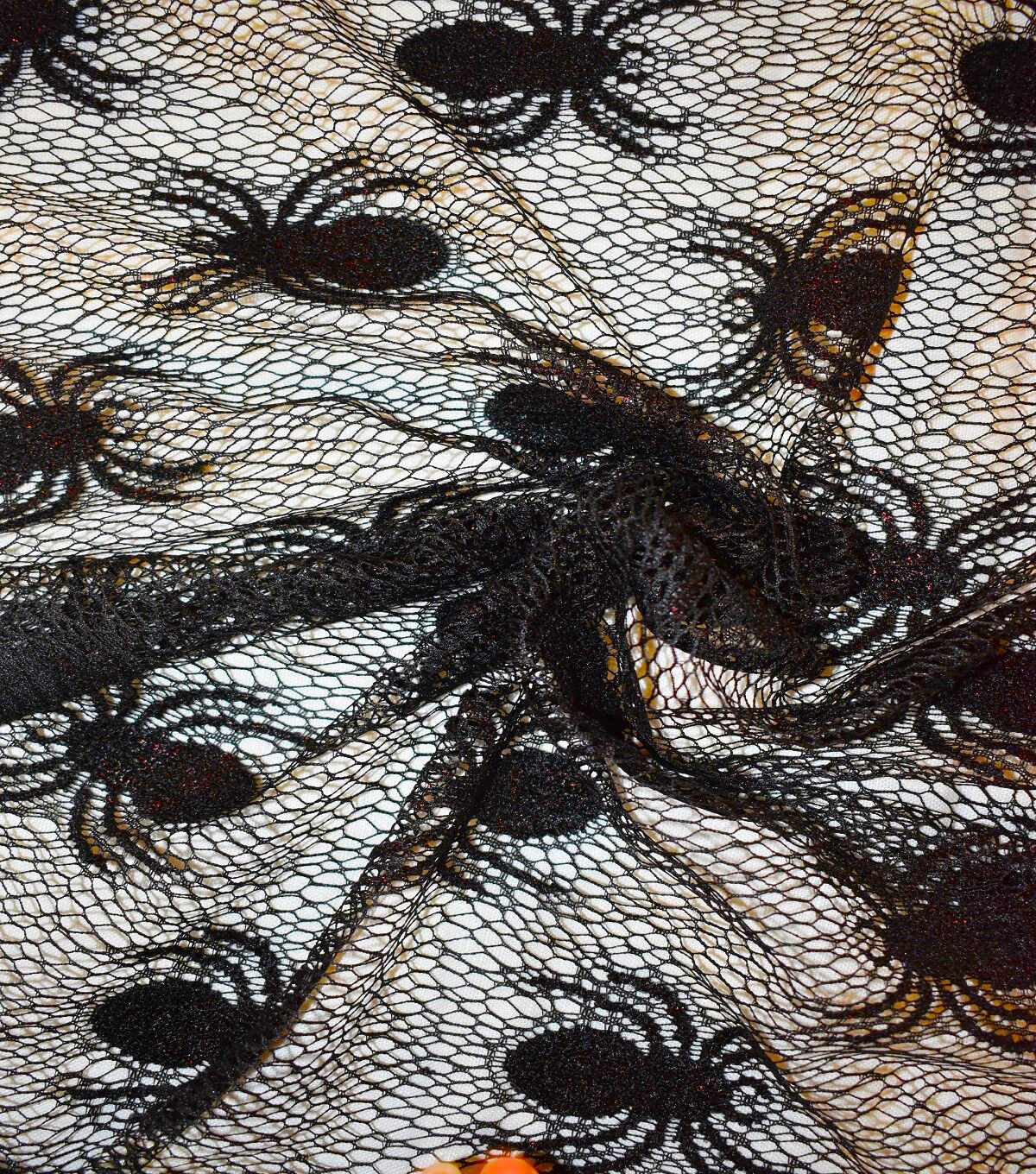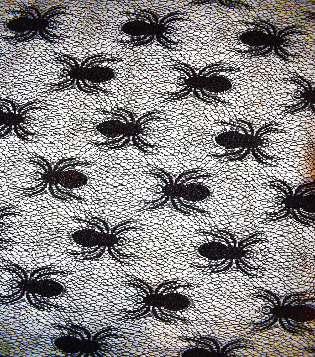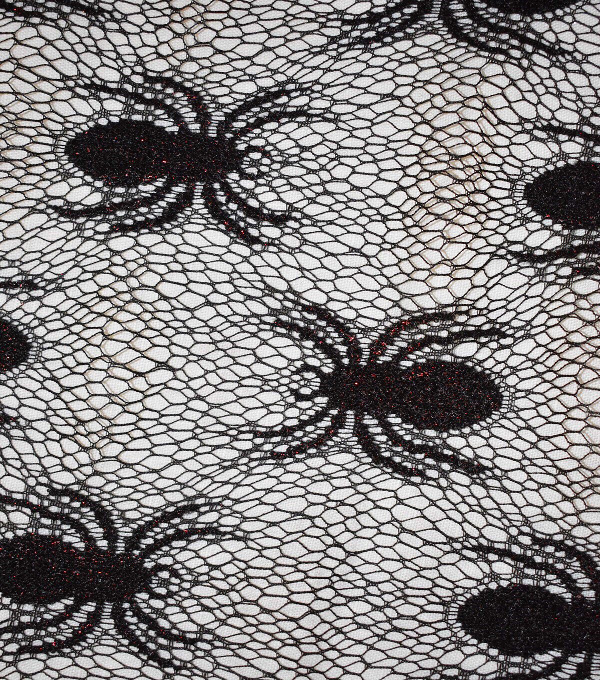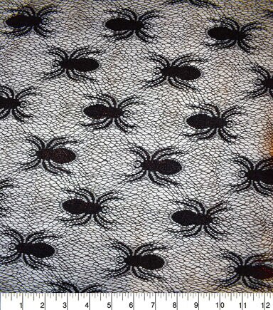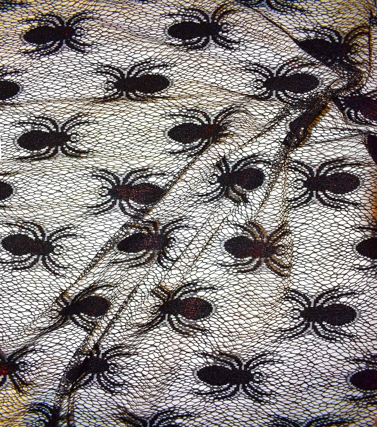 • The Witching Hour Black Lace Web With Spider Red Foil Fabric