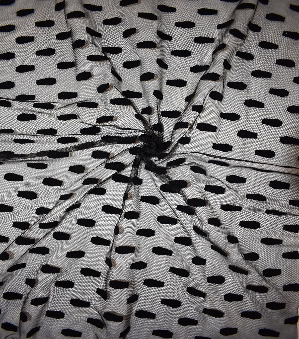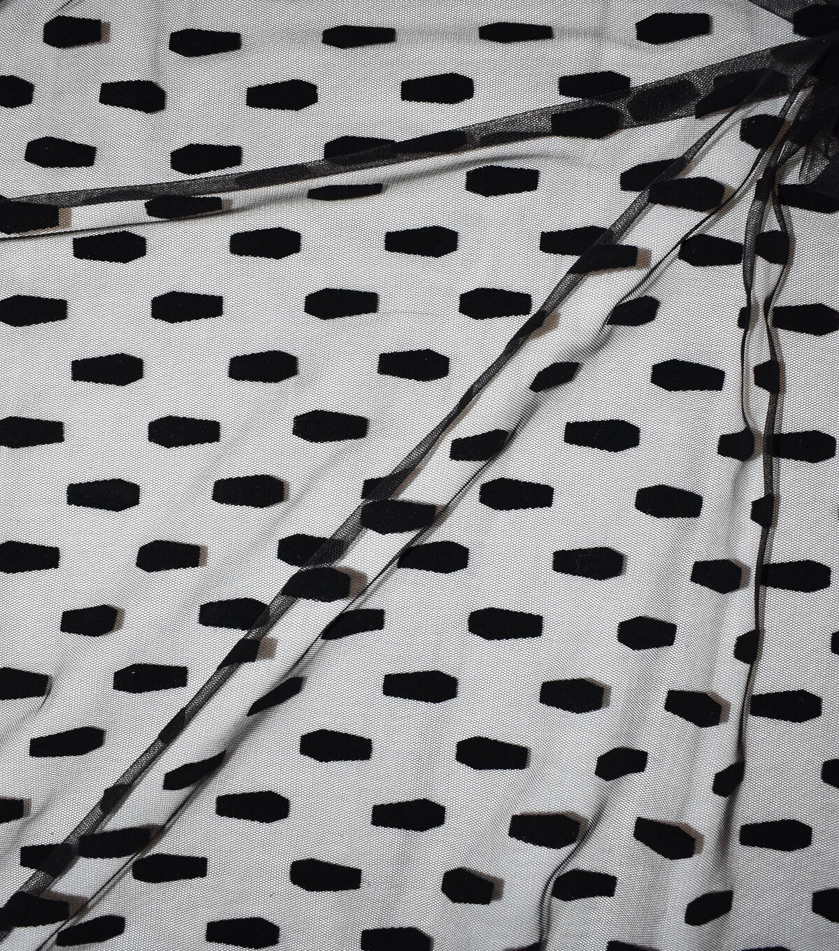 • The Witching Hour Flocked Coffin On Black Mesh Fabric