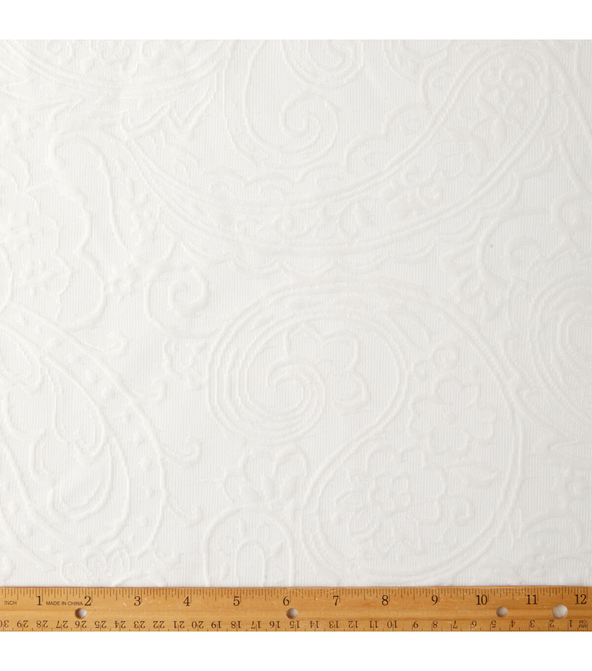 The Thomasville Ivory Jacquard Fabric is a traditional home decor fabric that can effortlessly match any design theme. Made of a cotton blend, this fabric is 54 inches wide and provides both comfort and durability. Its jacquard weave contributes to its sophisticated appearance, with a horizontal repeat of 14 inches and a vertical repeat of 22.5 inches. Despite its stylish design, this fabric does not compromise on strength and durability, with a rating of 15,000 to 29,000 double rubs. This fabric is sold by the yard and should be dry cleaned only to maintain its quality and longevity.