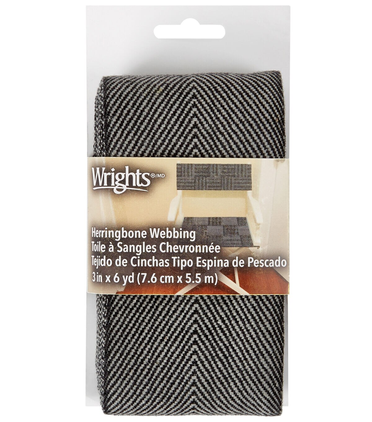 Use the Wrights Herringbone Webbing - Black to complete your upholstery projects. This pack contains 6 yards of herringbone webbing that sports a black shade. You can also use it to make tote bags or luggage racks and basic craft projects. It is machine washable and tumble dryable under low heat.