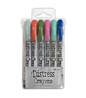 Tim Holtz Distress Crayons are formulated to achieve vibrant coloring effects on porous surfaces for mixed-media. The smooth water-reactive pigments are ideal for creating brilliant backgrounds, watercoloring, smudge effects and more! Color directly onto your surface and blend with water then layer with Distress Inks or Stains for more creative possibilities.