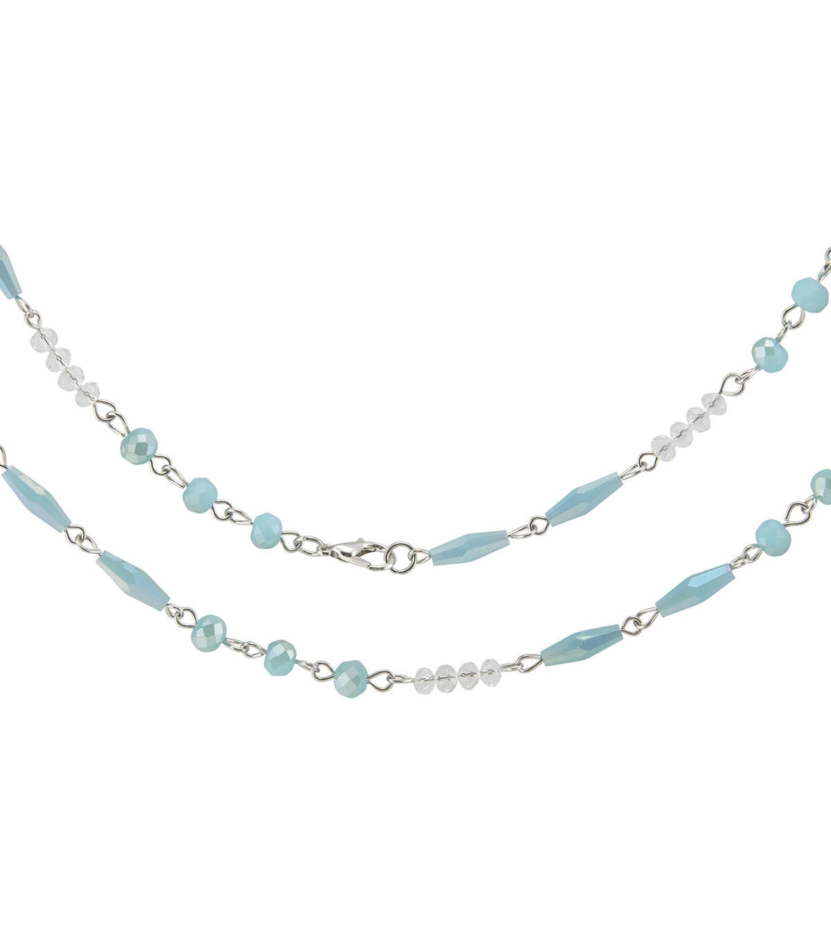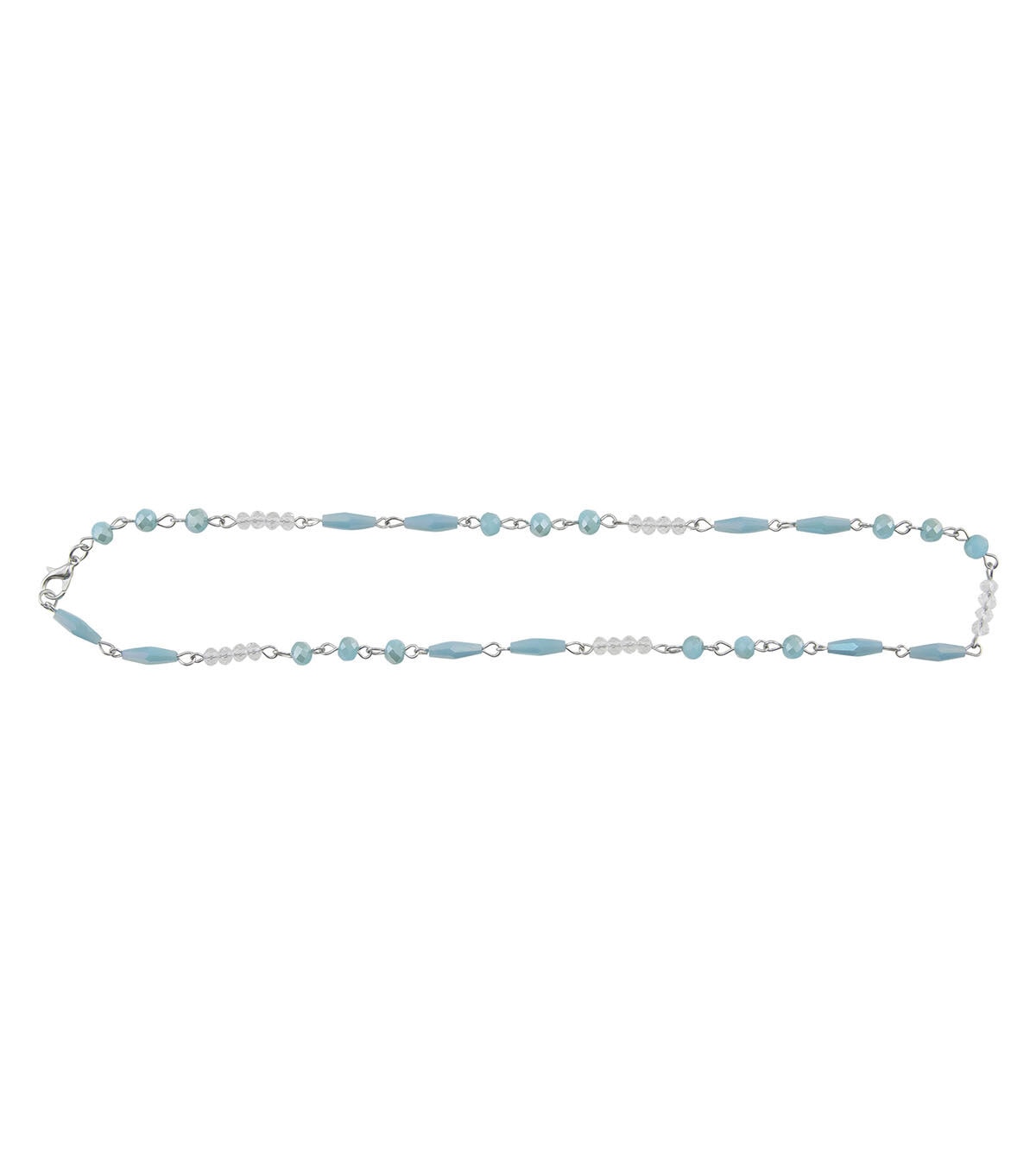 - Turquoise and clear beads on silver linked chain