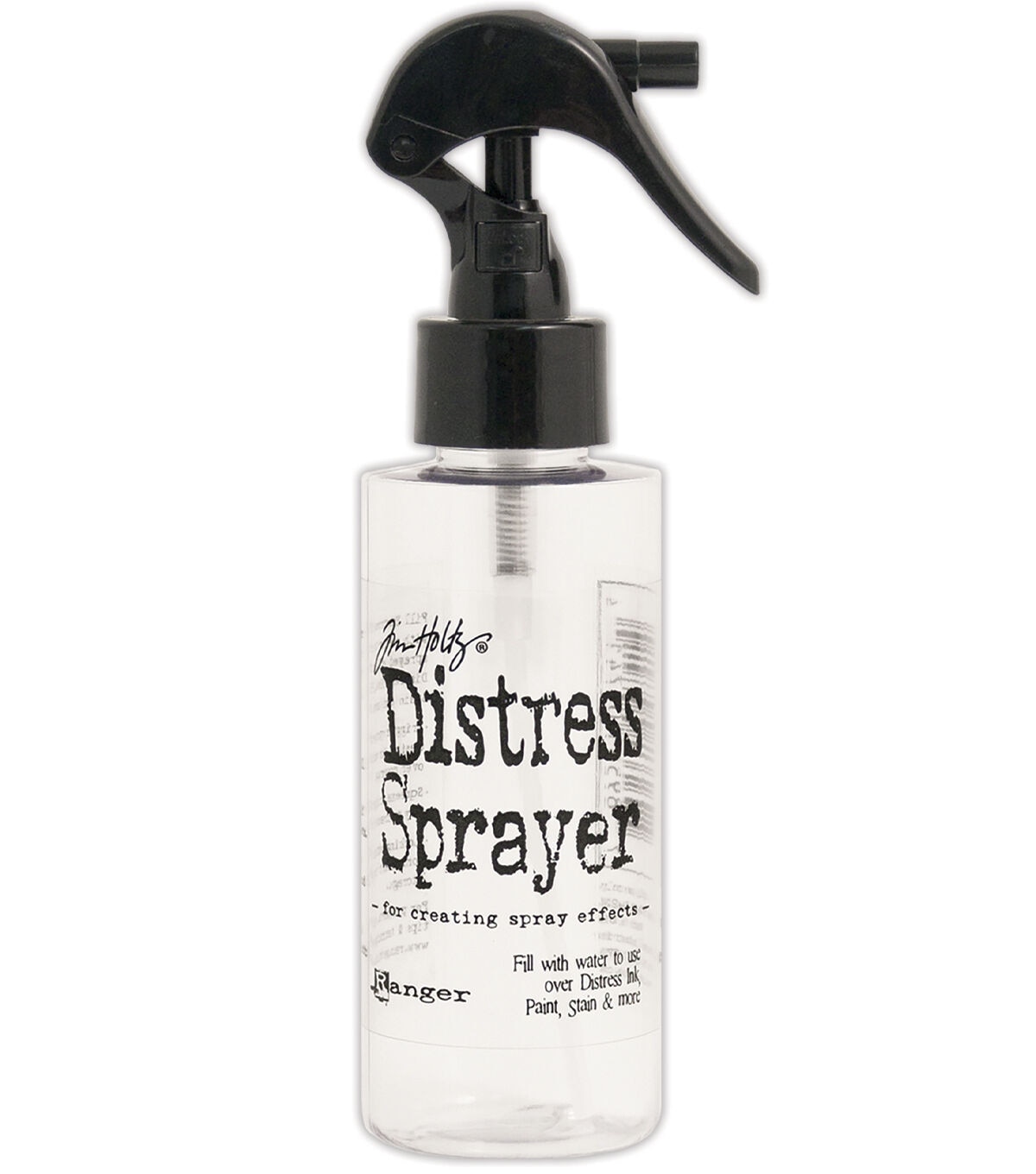 Ranger-Tim Holtz Distress Sprayer. Fill the Distress Sprayer with water to create sprayed effects over distress Ink, Paint, Stain and more! The trigger sprayer is designed for quick, all over coverage. This package contains one 2oz spray bottle. Conforms to ASTM D 4236. Made in USA.
