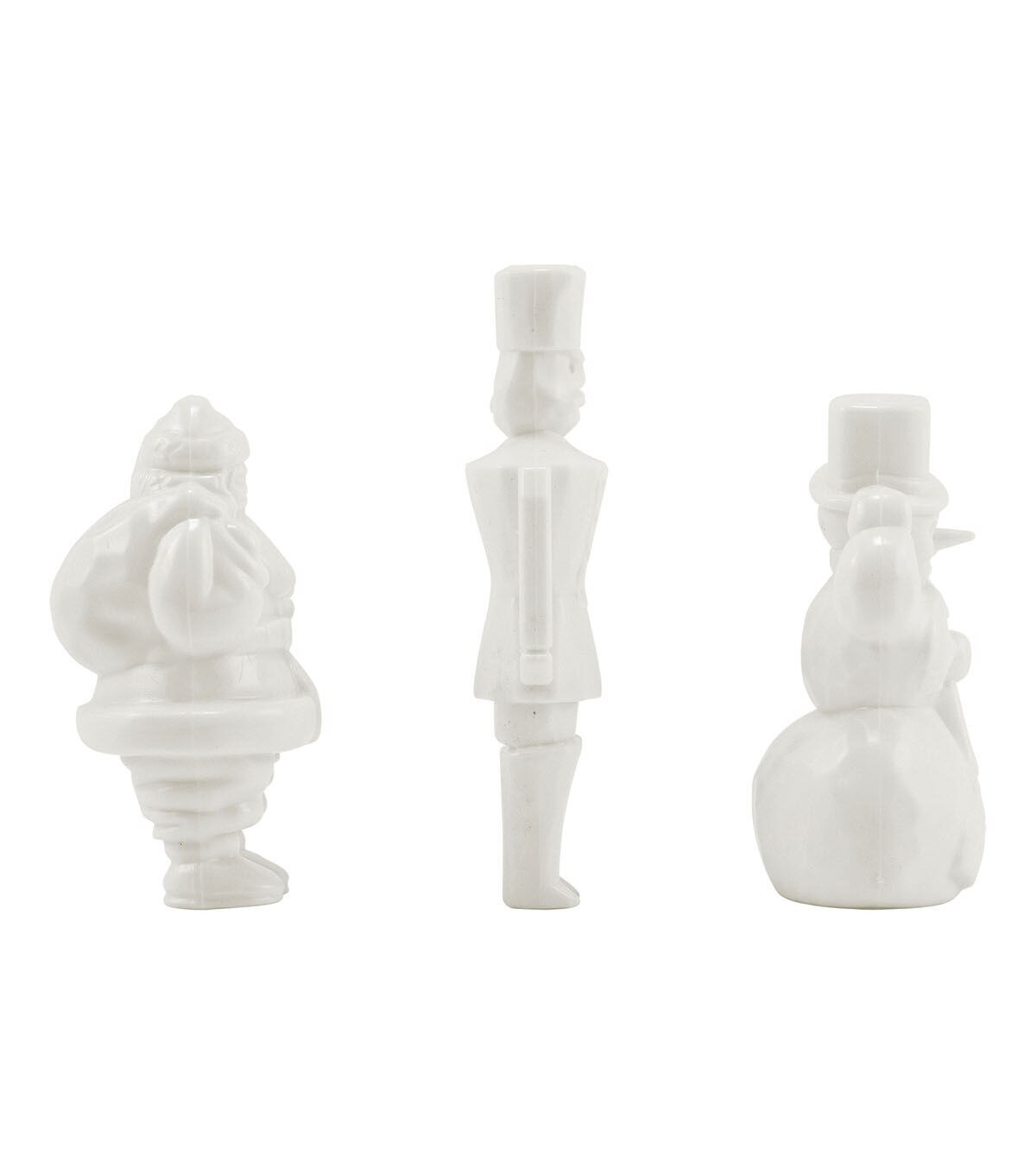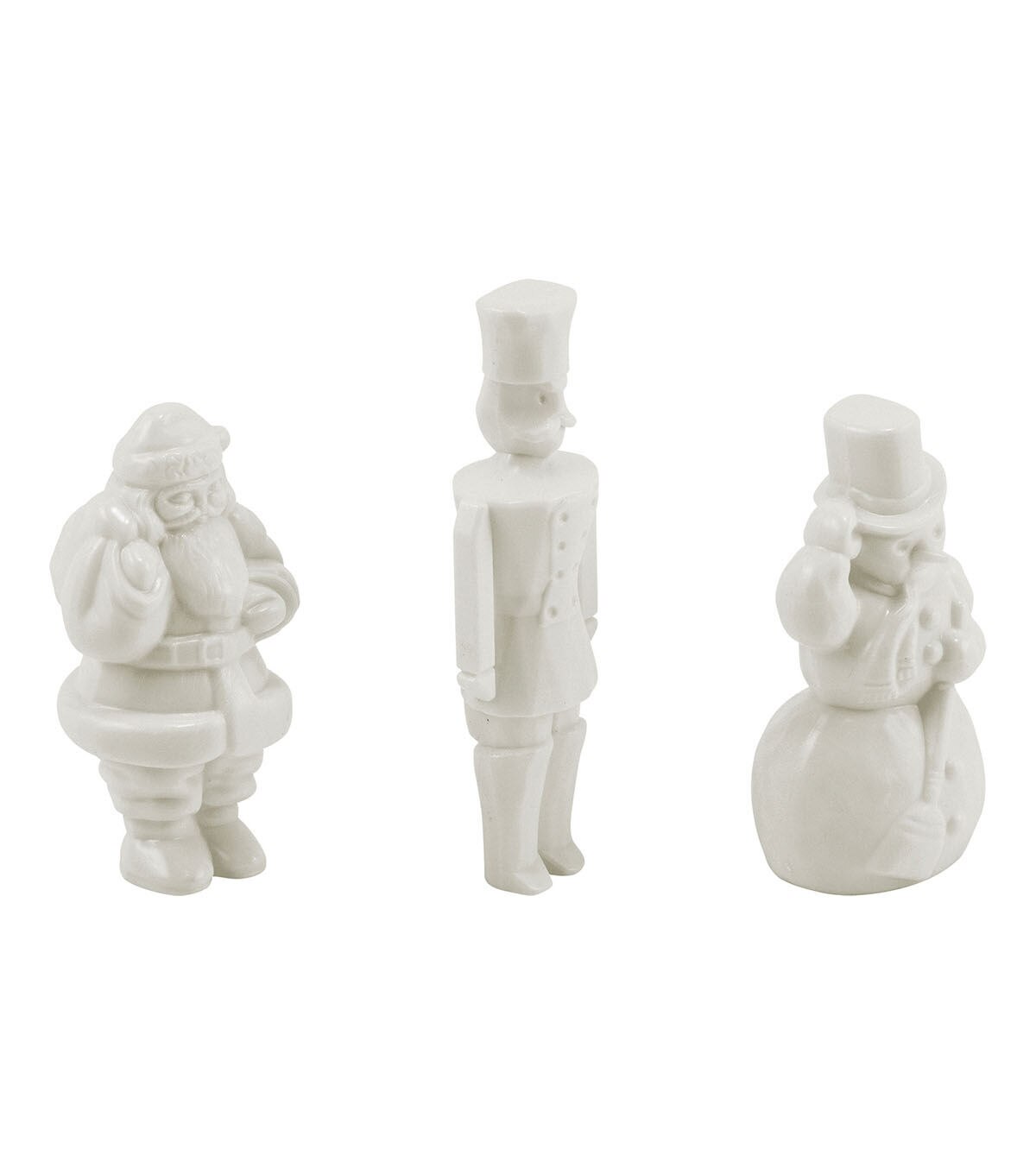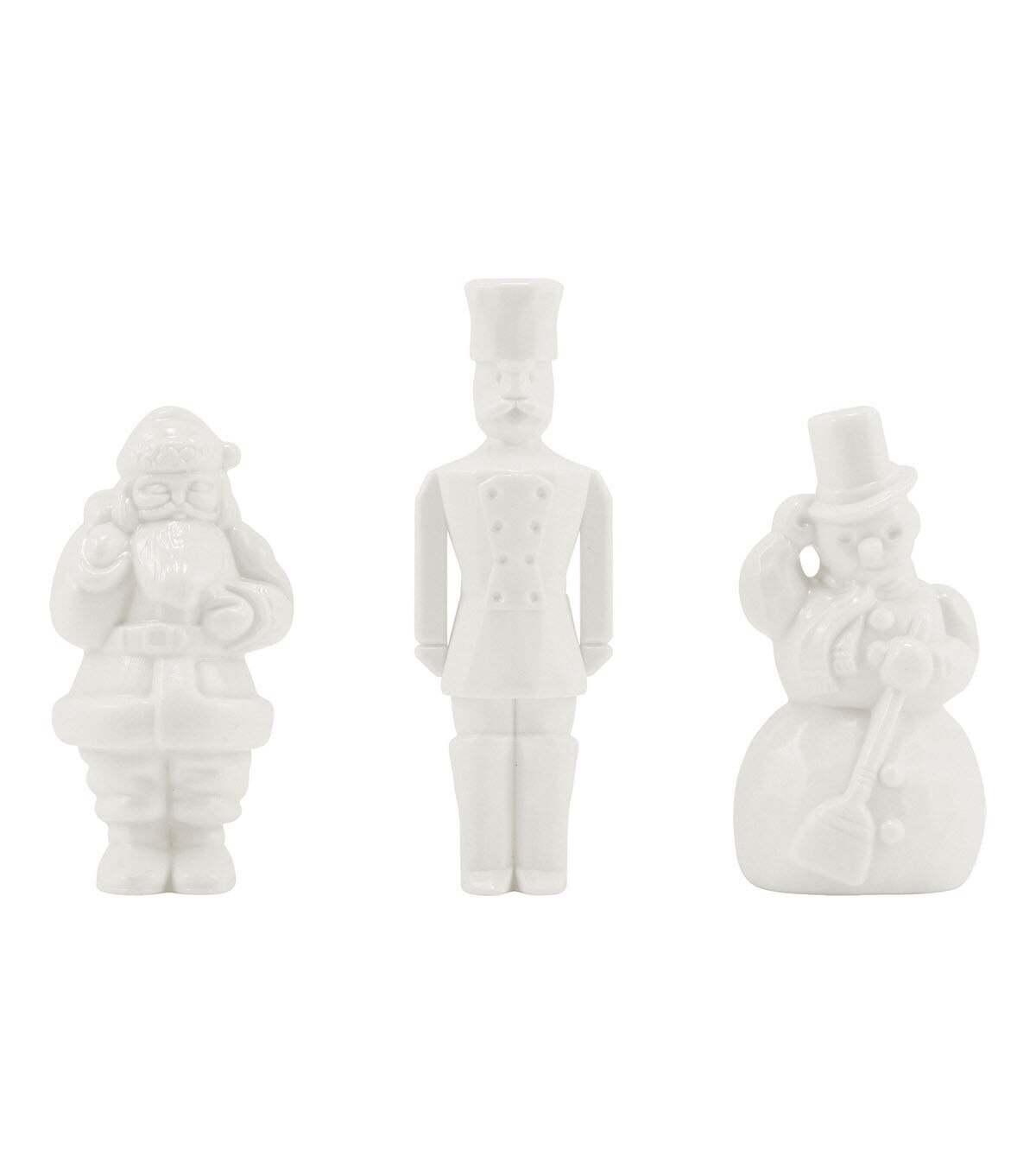 - Santa measures 2-3/4", Toy Soldier measures 3-1/2", and Snowman measures 2-3/4" in height
