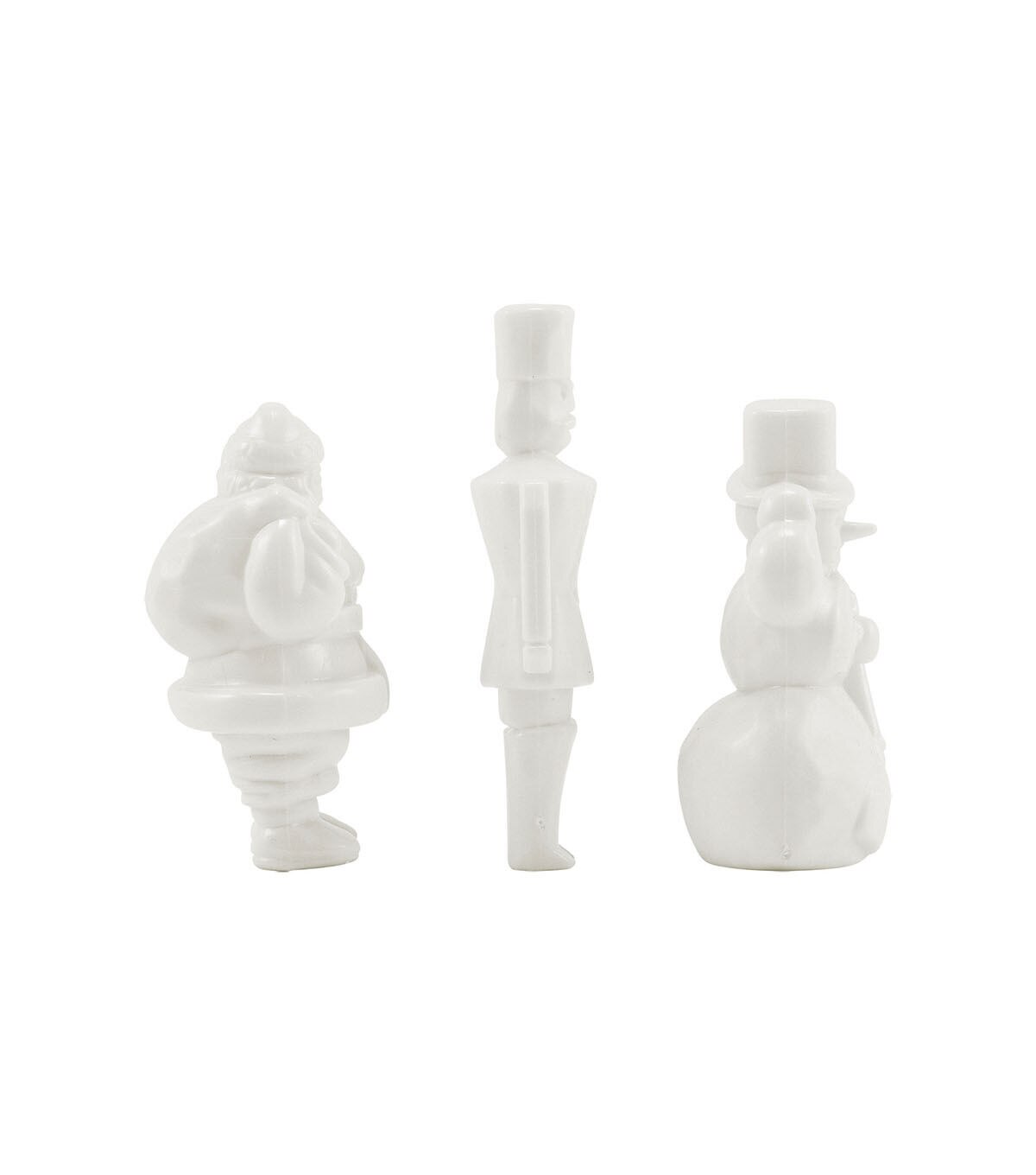 - Santa measures 2", Toy Soldier measures 2-1/2", and Snowman measures 2-1/8" in height