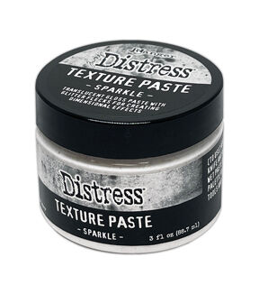 Tim Holtz Distress Holiday Texture Paste Sparkle is a translucent gloss paste with glitter flecks for creating dimensional effects.