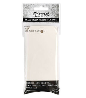 Tim Holtz Distress Mixed Media Heavystock #5 Tags have a durable smooth surface that can be altered with inks, paints, stamps, and more. The heavyweight surface stands up to your favorite wet and dry Distress techniques making creative possibilities endless.
