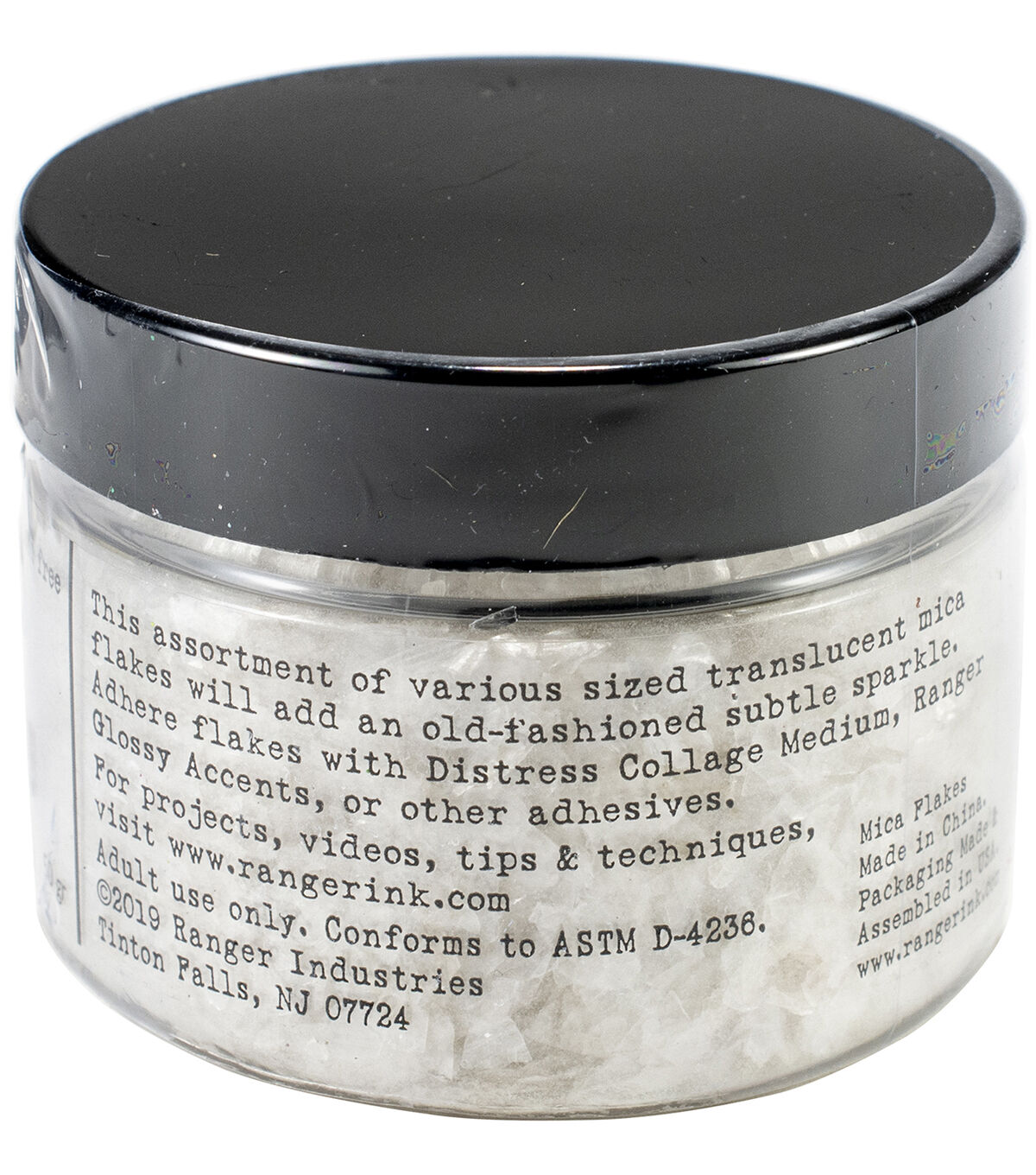 This assortment of various sized translucent mica flakes will add an old-fashioned subtle sparkle. Adhere flakes with Distress Collage Medium, Ranger Glossy Accents, or other adhesives (sold separately). This package contains 50g of mica flakes. Conforms to ASTM D 4236. Imported.