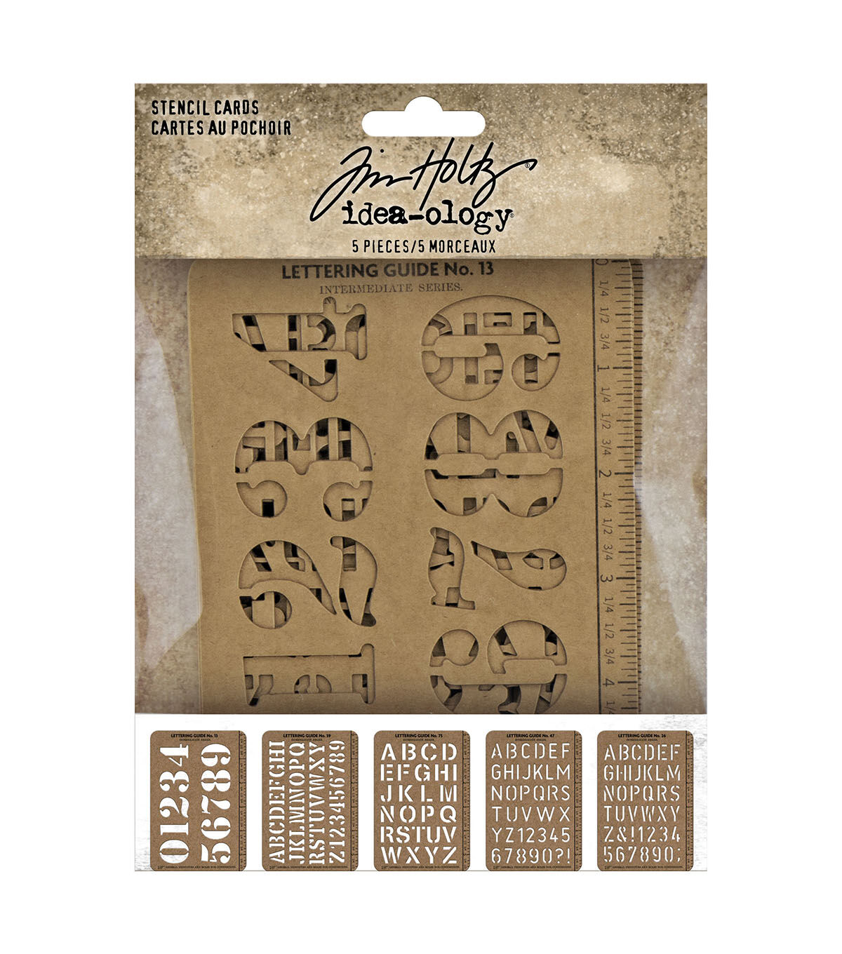Spell it out! Use Tim Holtz Stencil Cards to say anything. Cards have unique fonts and styles to trace and color words and numbers onto your choice of medium. Make a retro, or militaristic-inspired craft, or create a traditional label with a vintage stencil.