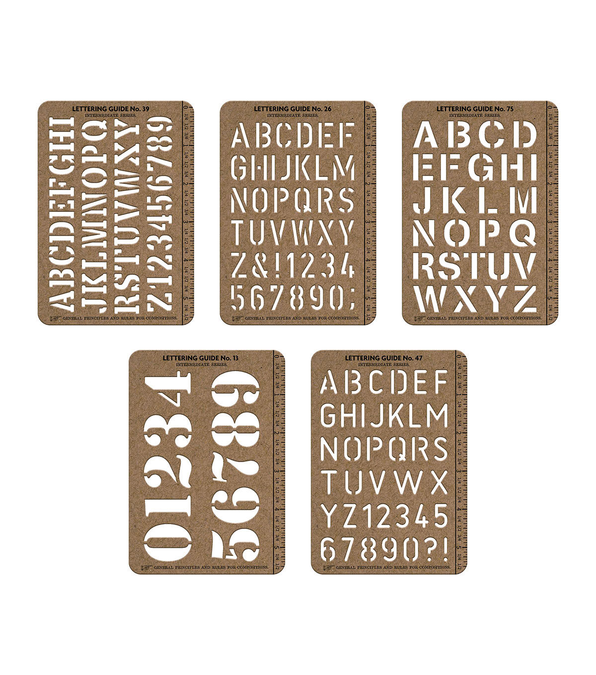 - Cards measure 5-3/8" by 3-3/4," Letters measure 5/8" to 1-1/8" in height