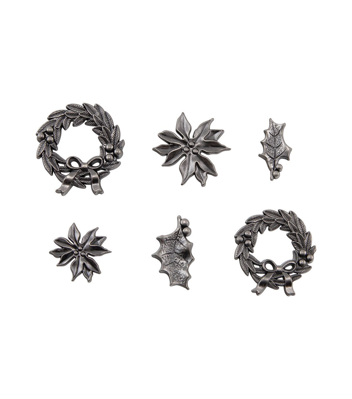Deck the halls and your makes with these miniature metal wreaths, poinsettias and holly. These adornments will add a charming finishing touch to any holiday make.