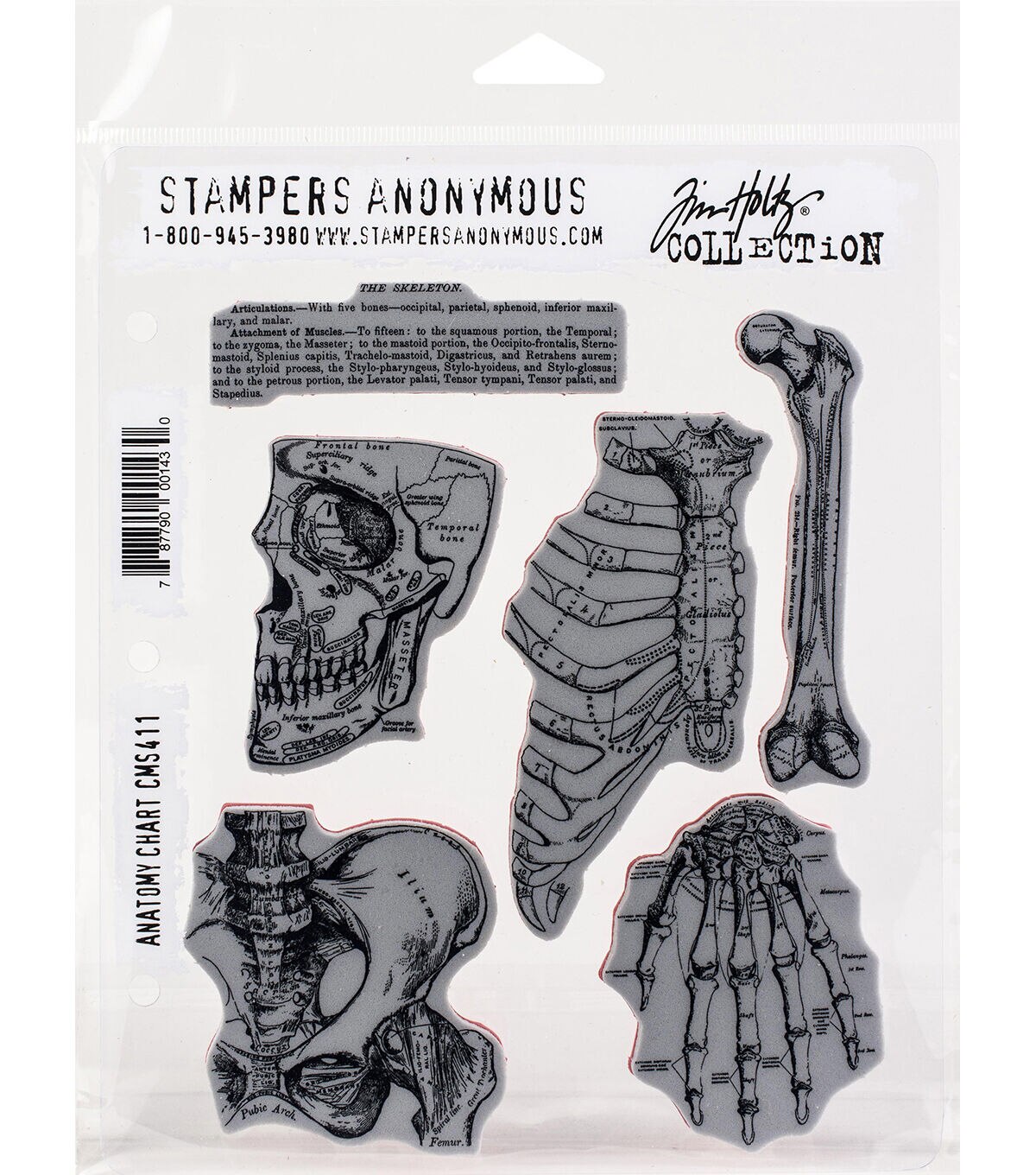 • Tim Holtz 7" x 8.5" Anatomy Chart Red Rubber Cling Stamps