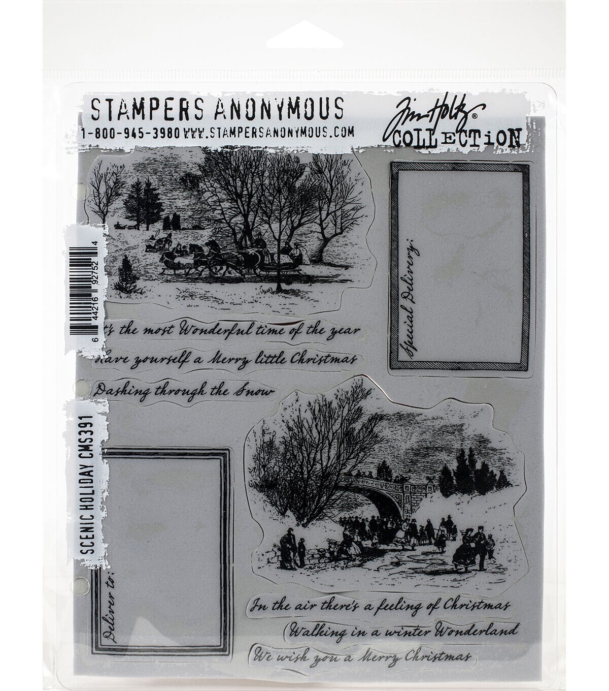 Tim Holtz 7" x 8.5" Scenic Holiday Red Rubber Cling Stamp Sheet