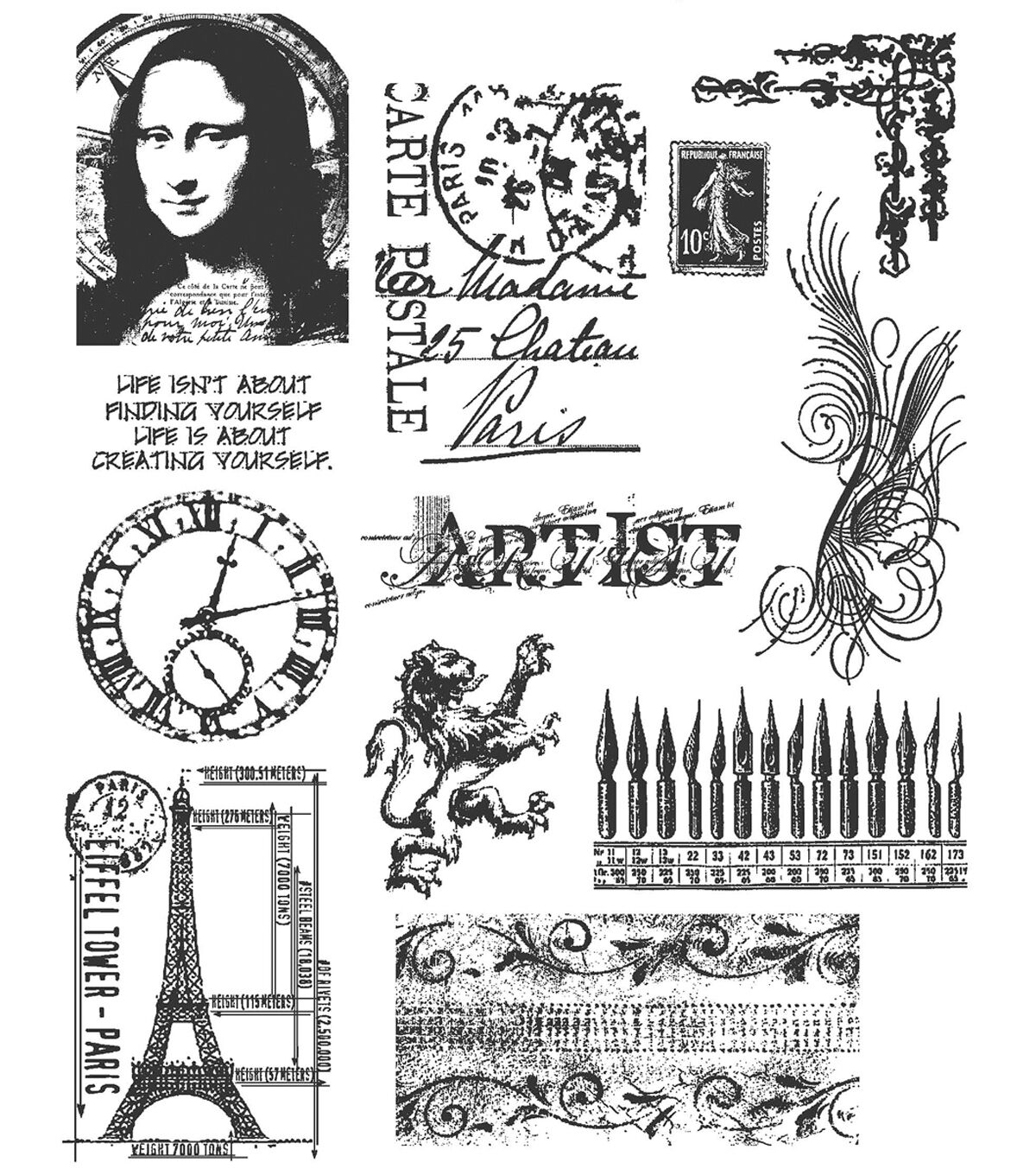• Tim Holtz 8.5" x 7" France Cling Rubber Stamp Sheet