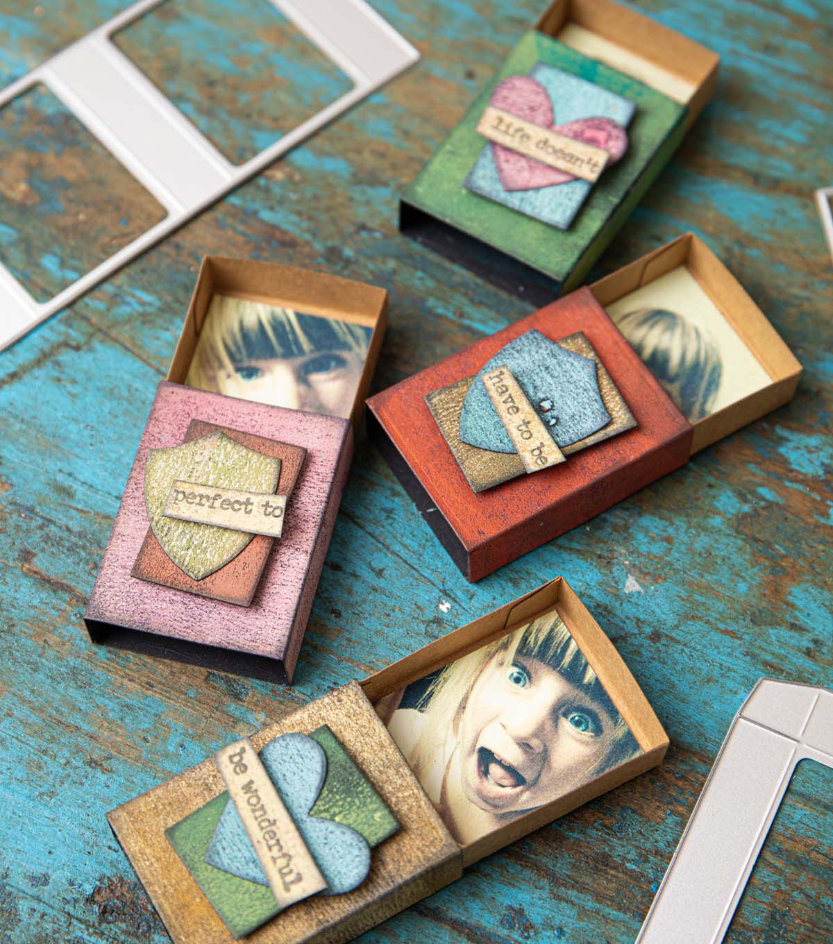 Tim Holtz's New Matchbox die set isn't just visually stunning – they're also designed for practicality. Create functional mini-boxes for storing trinkets, tiny treasures, or even secret messages. These versatile designs merge form and function seamlessly.