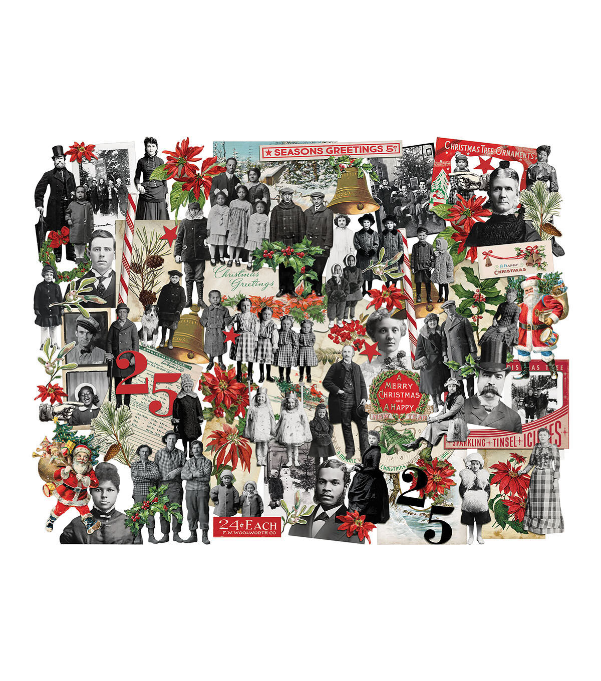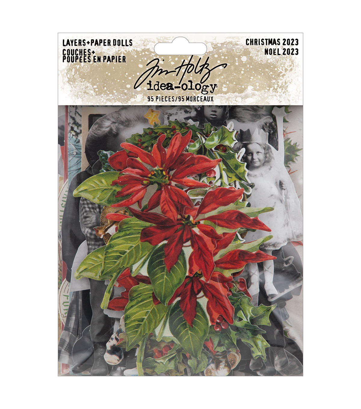 Add character to your next project using Tim Holtz Layers + Paper Dolls, Christmas pack. This pack includes an eclectic cast of characters and salvaged elements. Use in any combination or configuration for a layered look and visual interest.