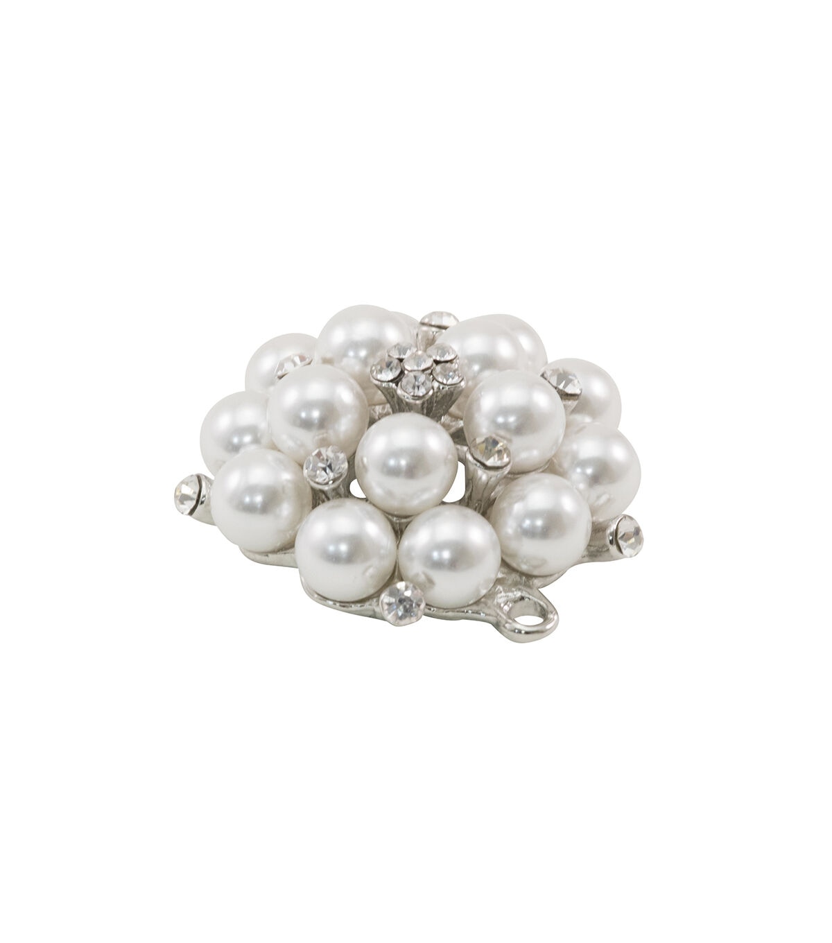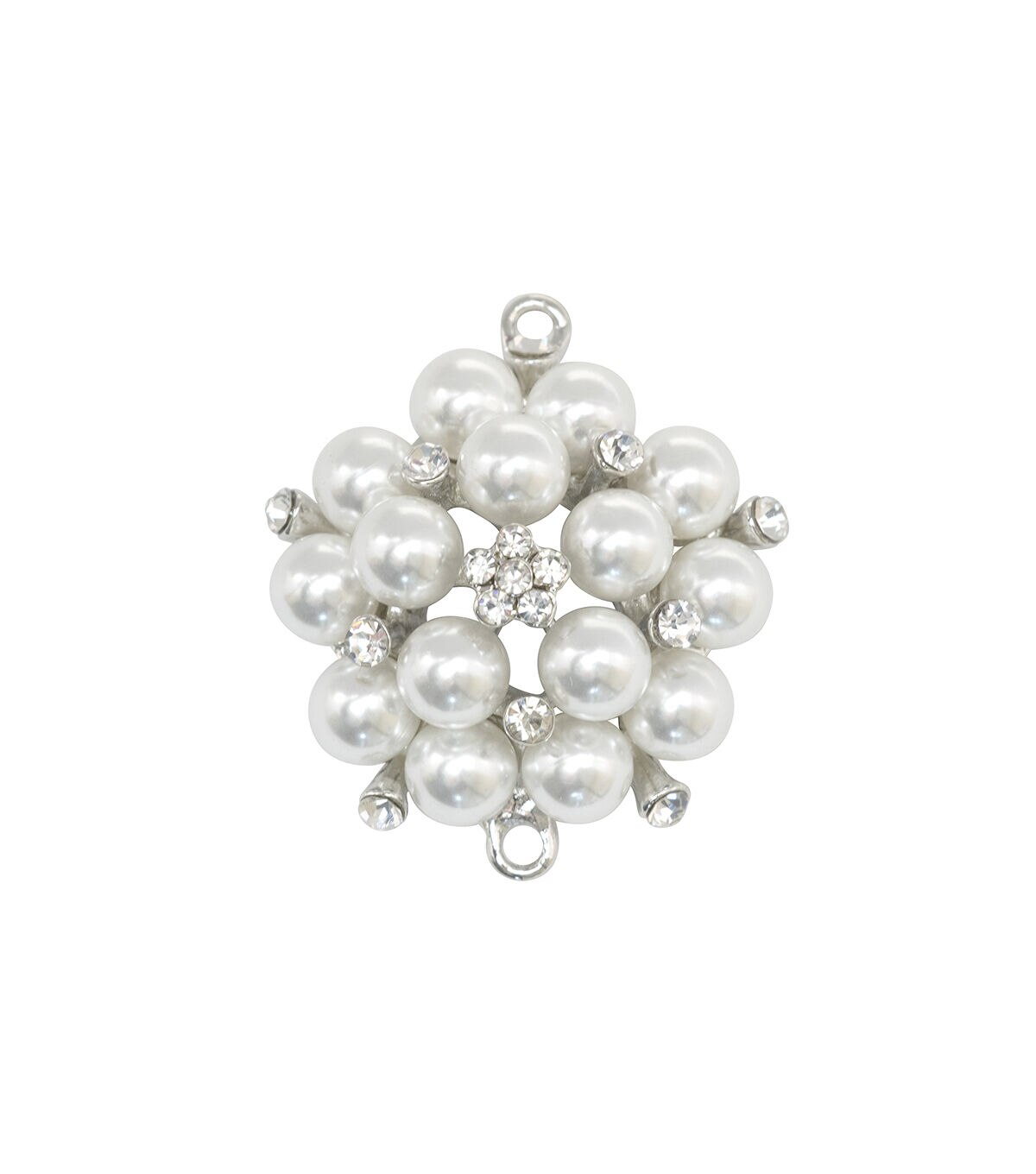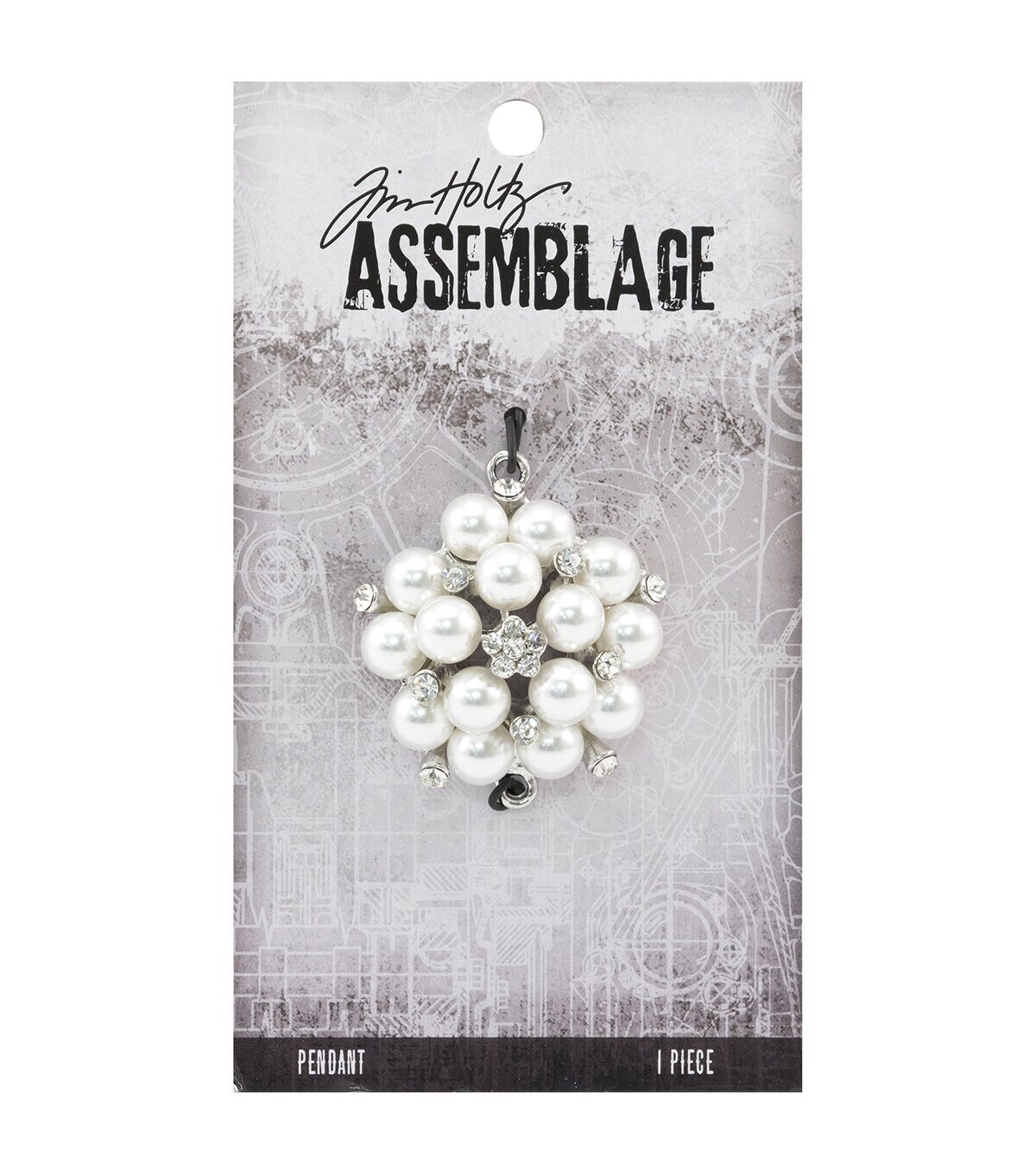 Prettify a simple chain with the Tim Holtz Assemblage Pearl Cluster Pendant. This round pearl cluster pendant features rhinestone accents and center floral rhinestone detail. It includes two loops for attaching to findings or chains, and it can be worn both vertically and horizontally.