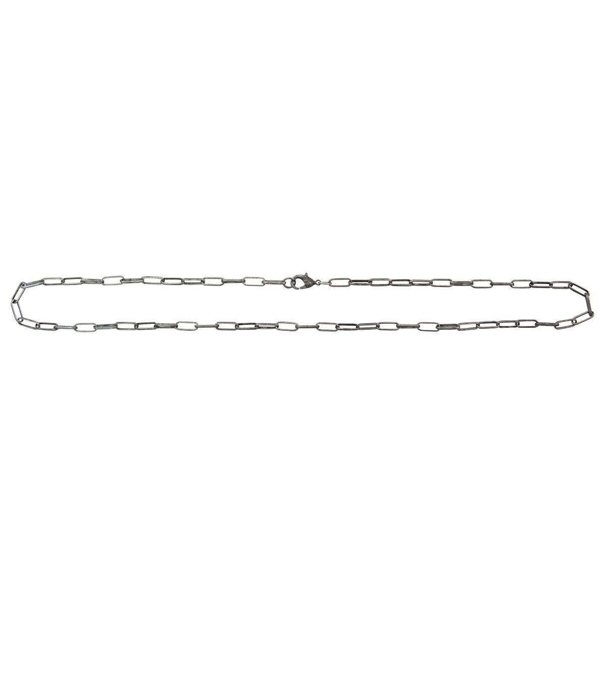 Accent the Tim Holtz Assemblage 18” Small Link Chain-Gunmetal with pendants or charms of your choice to create a lovely DIY necklace. This 18-inch long, delicate chain is crafted with a dark antique silver finish, and features thin rounded rectangle shaped links. It’s got a lobster claw clasp for easy attachment.