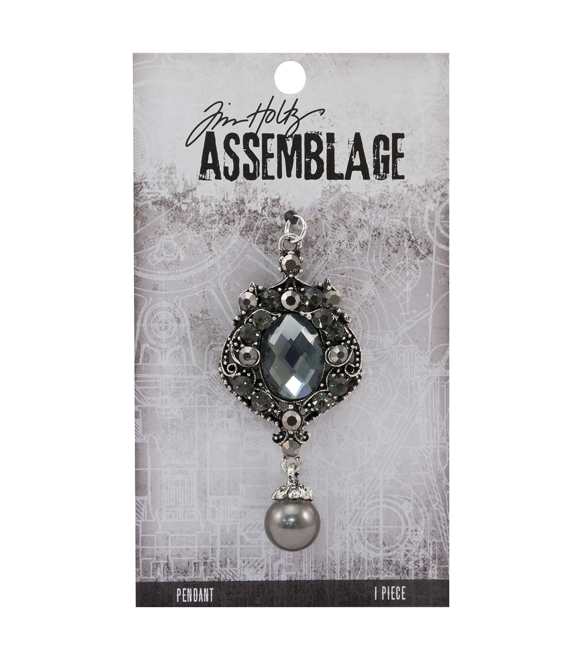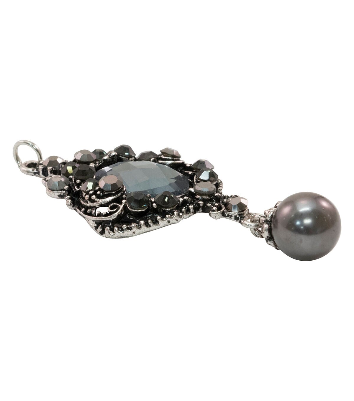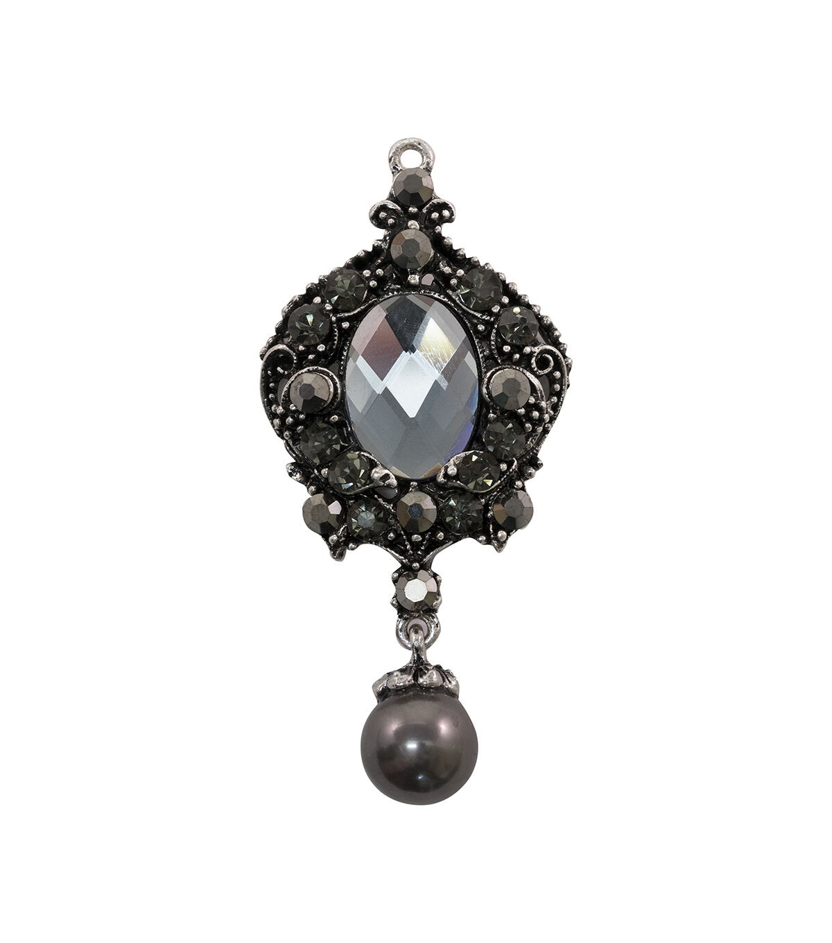 Prettify a simple chain with the Tim Holtz Assemblage Jeweled Pendulous Pendant. This vintage-style pendant is designed in an antique silver finish with a large oval-shaped center rhinestone and accent smoke-colored rhinestones with a smoke-colored pearl at the base. It includes a jump ring.