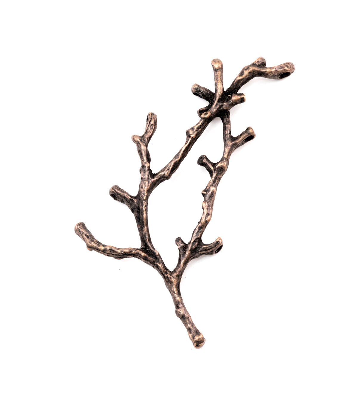 Lend visual flair to your jewelry projects with the Tim Holtz Assemblage Branch Charm. Designed exclusively for JOANN by designer Tim Holtz, the Assemblage collection is a gathering of various elements and unrelated objects to create unique, wearable designs, ranging from vintage shabby and deco glam to urban hipster and industrial. The pack contains a branch charm with antique copper finish that can be hung from the top, bottom or either side. It features a total of eight locations for jump rings or a thin chain.