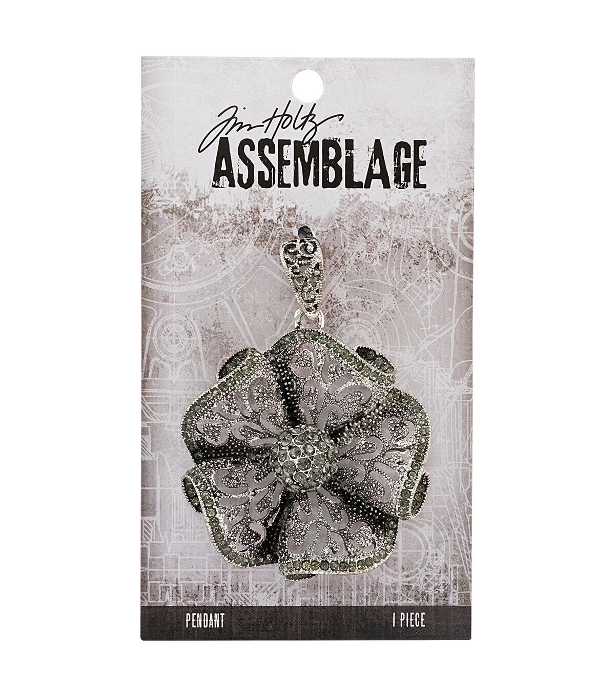Personalize a charm bracelet or necklace, using the Tim Holtz Assemblage Milagros Antique Silver Charms. From designer Tim Holtz, these charms are exclusive to JOANN. This pack includes a detailed, ruffled, floral pendant with cut-out filigree, outer rhinestone accents and a center rhinestone-detailed orb. It includes an ornate pendant bail with filigree detailing.