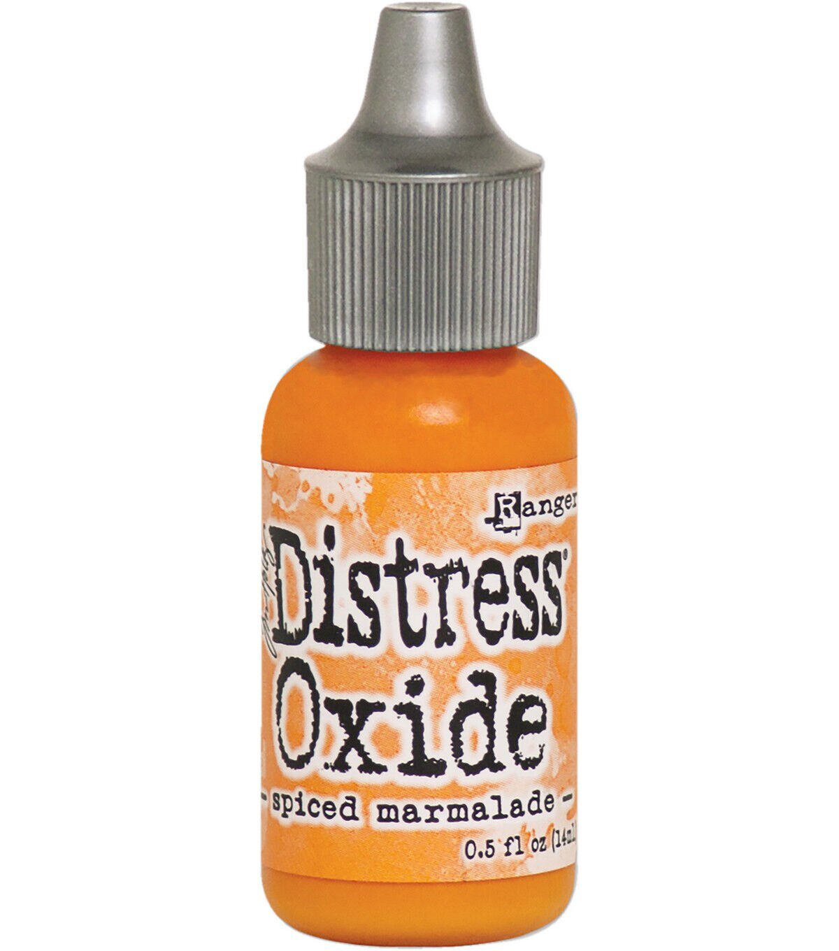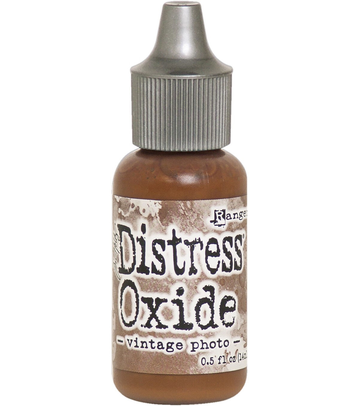 This water-reactive dye and pigment ink fusion creates an oxidized effect when sprayed with water. Use to re-ink Distress Oxide Ink Pads (sold separately). Available in a variety of colors, each sold separately. This package contains Tim Holtz Distress Oxides Reinker, 0.5 ounces. Conforms to ASTM D 4236. Made in the USA.