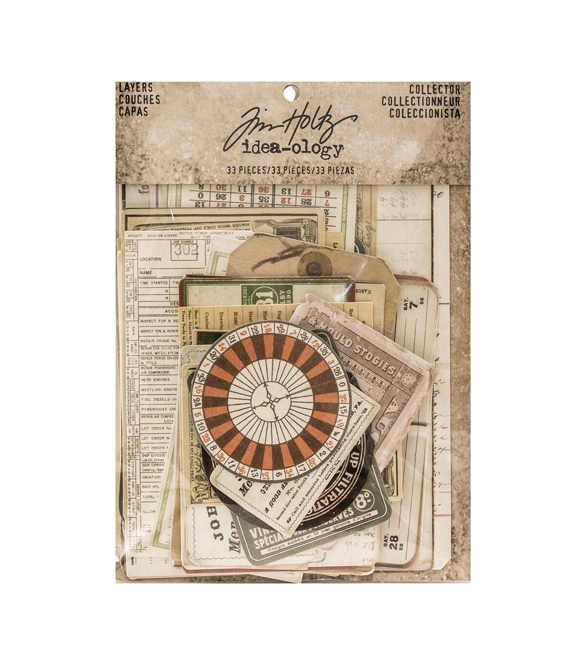 Imbue a classic, vintage vibe into your DIY craft projects with the Tim Holtz Idea-ology Collector Layers. These salvaged paper elements, comprising of imagery, phrases and icons, make a lovely choice for layering. Use them on vignette boxes, wooden frames, craft boards, burlap wall art, and lots more to create aesthetic retro appeal. Alter these layers with inks, or make a collage to accentuate your vintage-themed project.