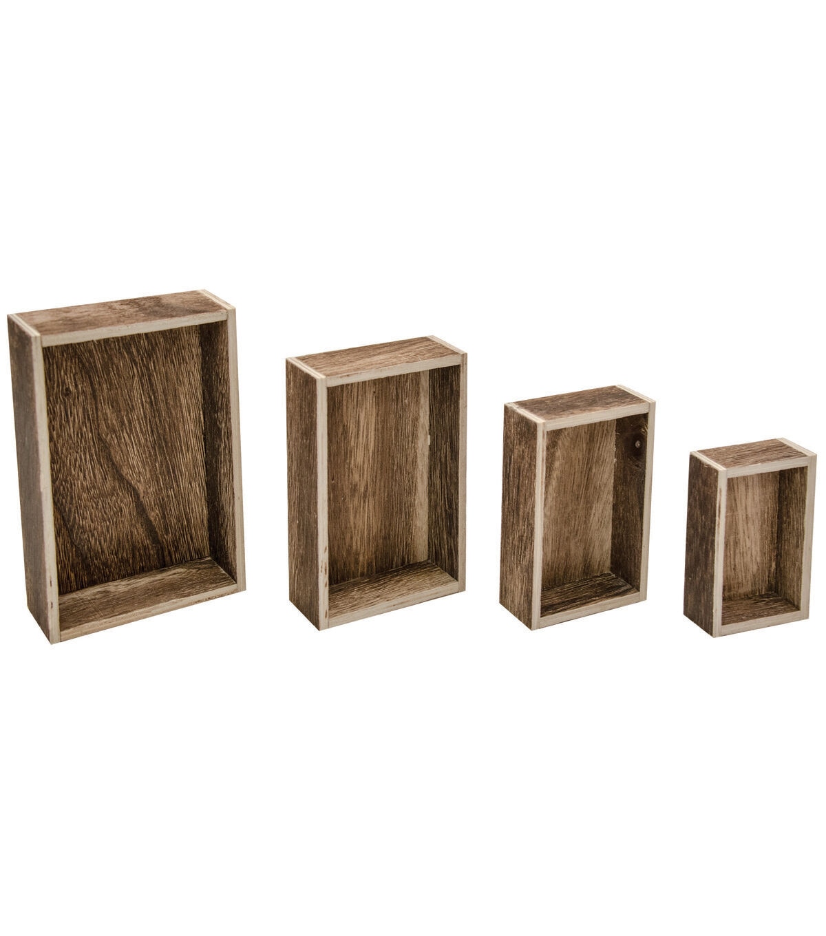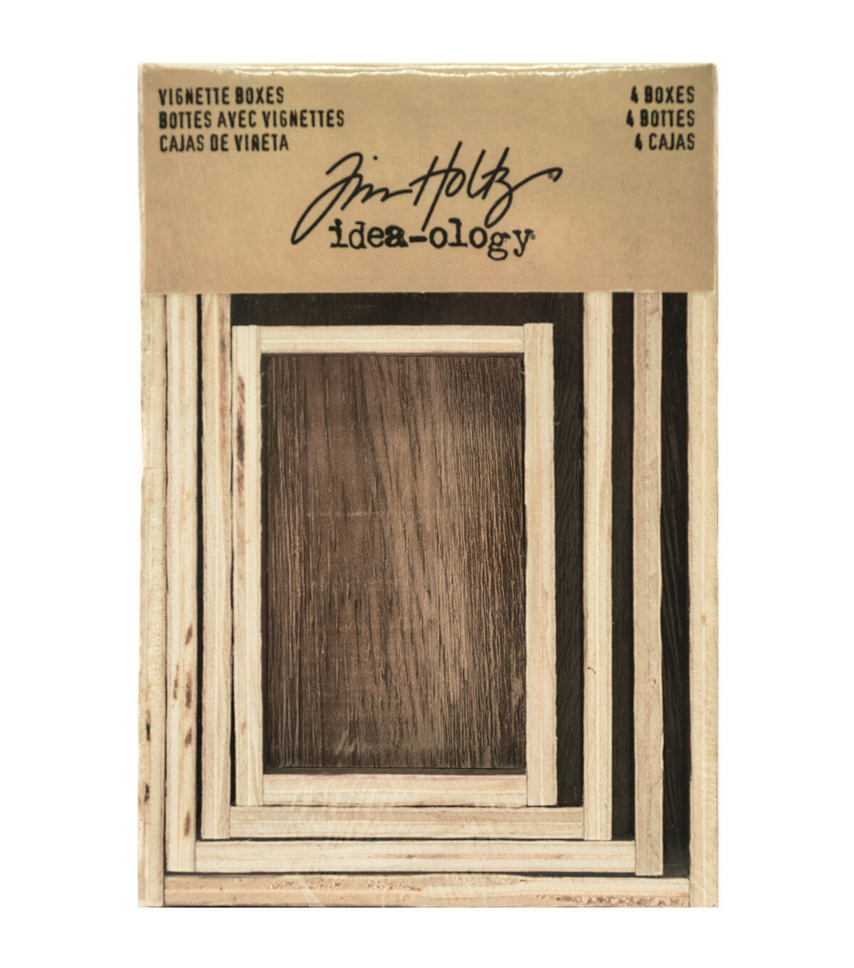 A collection of small, wooden boxes ideal for creating dimensional collage and mixed media projects.
