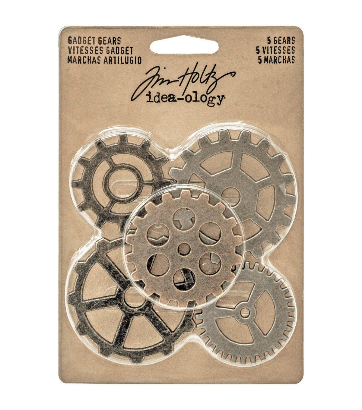 Advantus-Tim Holtz Idea Ology Metal Gadget Gears: Antique Nickel, Brass And Copper. Use these metal gears as adornments for your mixed media projects! This 5-1/4x3-3/4x1/4 inch package contains five metal gadget gears in assorted designs and sizes. Imported.