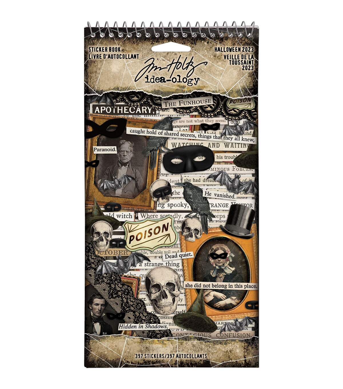 This sticker book includes an assortment of creepy portraits and Halloween-themed labels, phrases and images. Perfect for journals, cards, and more.