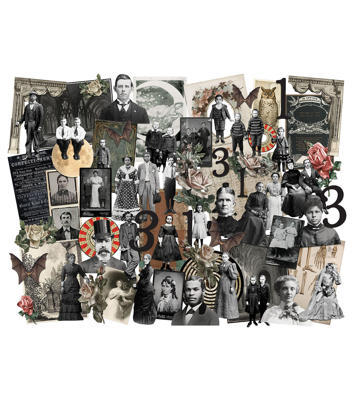Add character to your next project using Tim Holtz Layers + Paper Dolls, Halloween pack. This pack includes an eclectic cast of characters including solos, groups, and portraits. Use these salvaged elements in any combination or configuration for a layered look and visual interest.