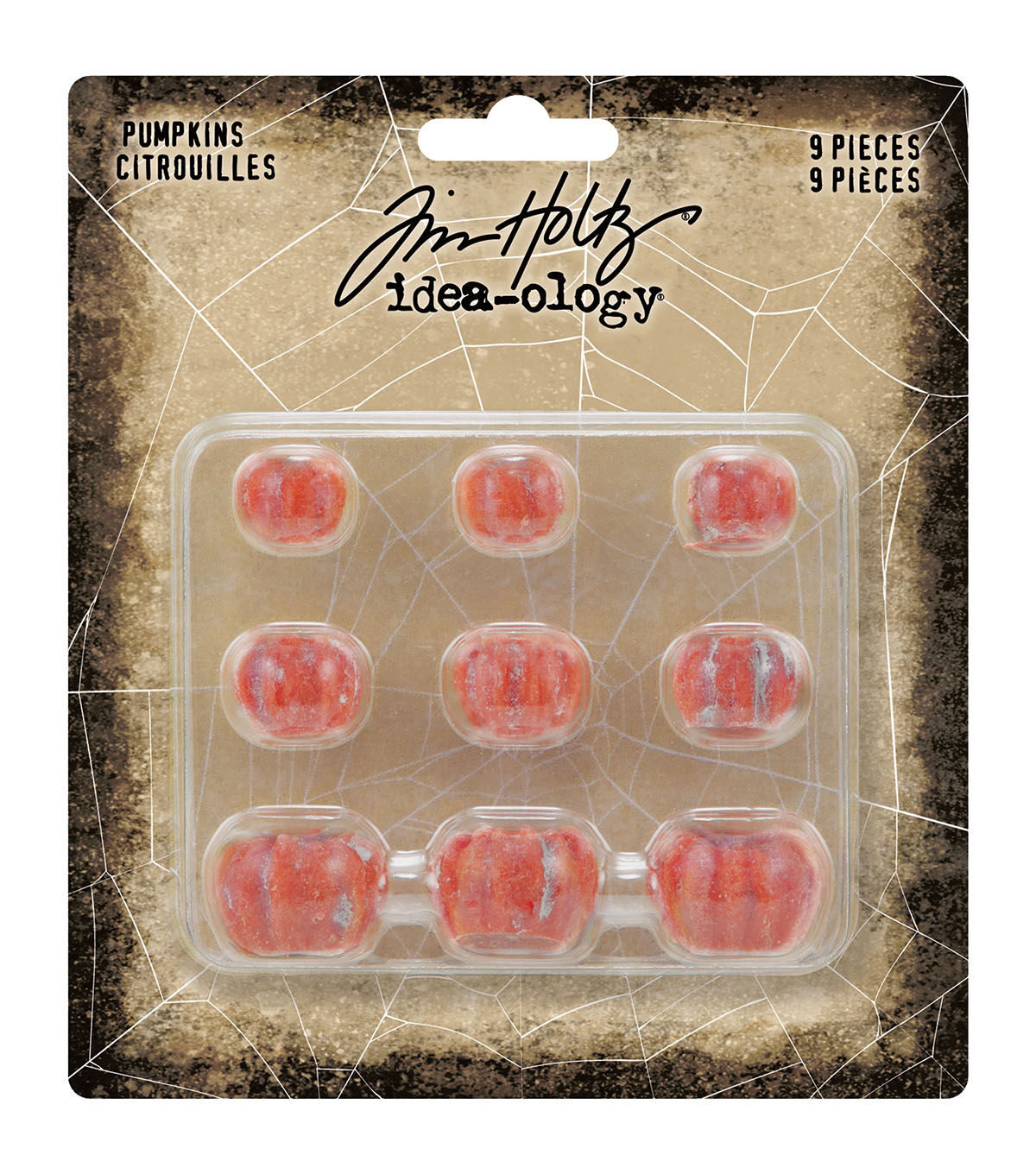 Three-dimensional, miniature, and oh so cute. These Tim Holtz Pumpkins are resin figurines that can be displayed in Vignettes, Curio Clock, Display Domes, stack on Urns and more.