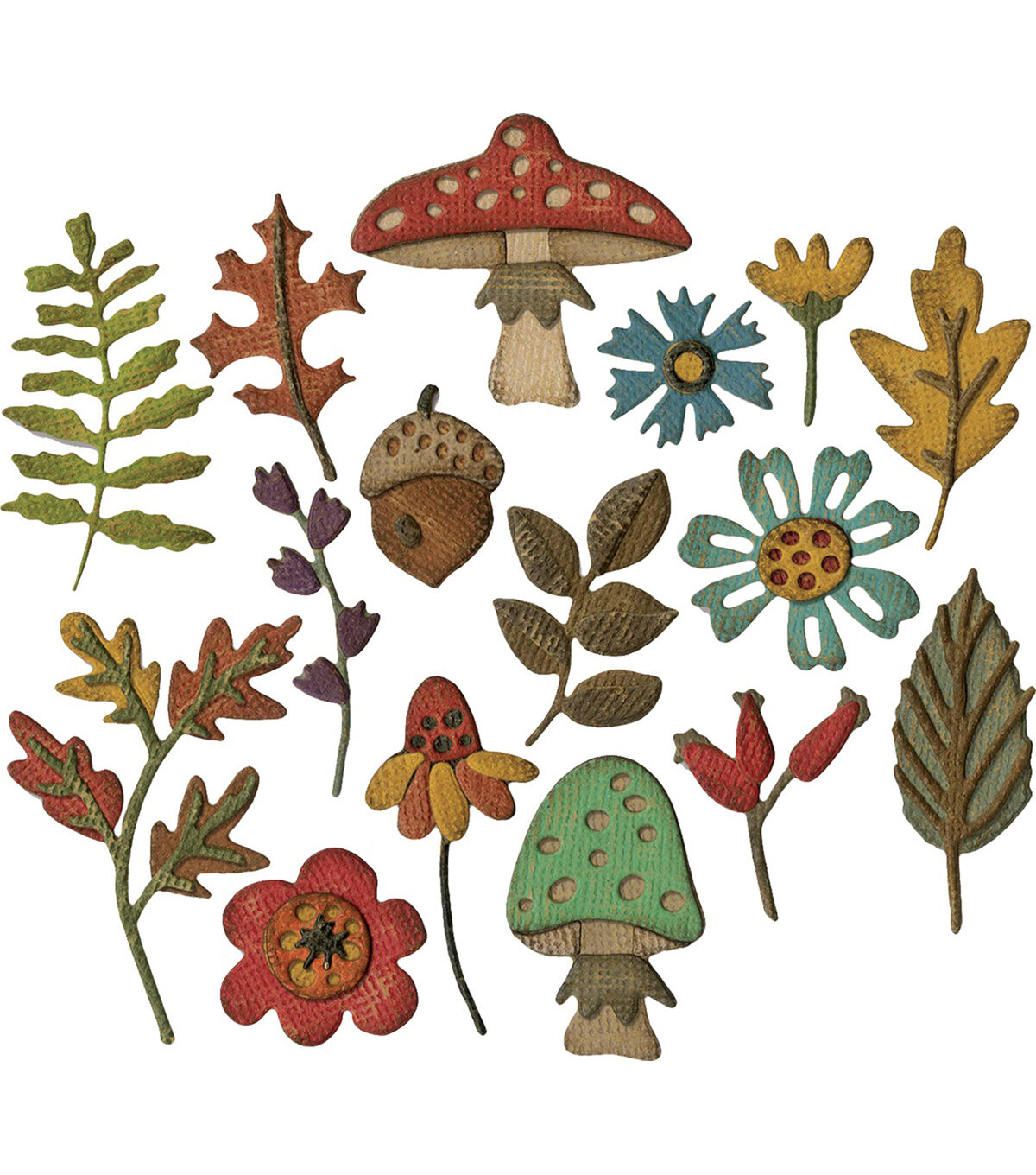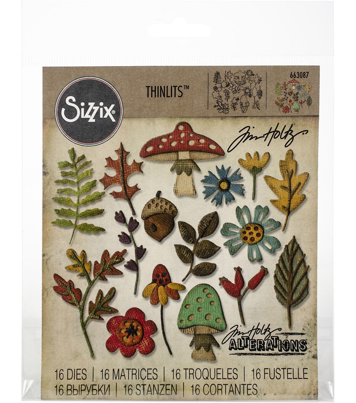 Thinlit dies offer a variety of affordable solo options or multi die options. Thinlits are easy to use and are compact and portable. These dies are compatible with Sizzix BIGkick, BigShot, Vagabond and Big Shot Pro. This package contains Funky Foliage: a set of 16 metal dies measuring between .5x.25 inches and 1.375x1.125 inches. Designer: Tim Holtz. WARNING: Choking Hazard. Not suitable for children under 3 years. WARNING: Cut Hazard, Sharp Blade. Contact may result in injury. Always keep blades away from fingers and body. Handle with Care. Keep out of reach of children. Imported.