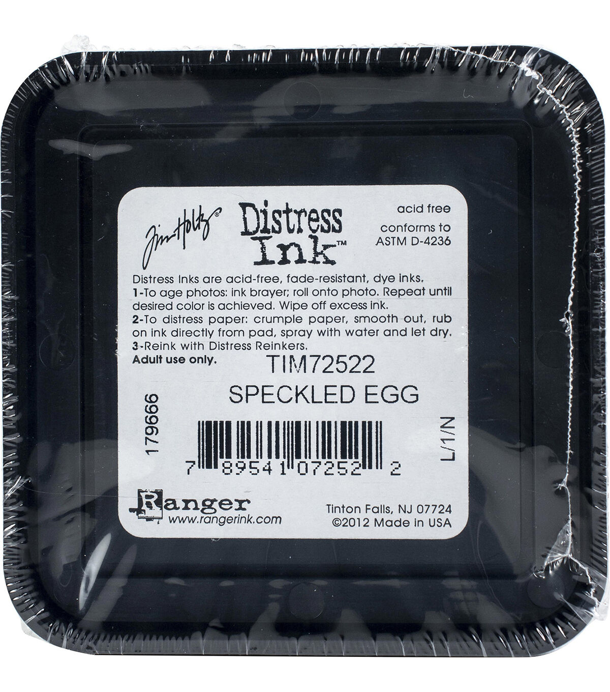 Ranger-Tim Holtz Distress Ink Pad. Create an aged look on papers, fibers, photos and more! This package contains one 2-1/4x2-1/4 inch ink pad. Comes in a variety of distressed colors. Each sold separately. Acid free. Non-toxic. Conforms to ASTM D 4236. Made in USA.