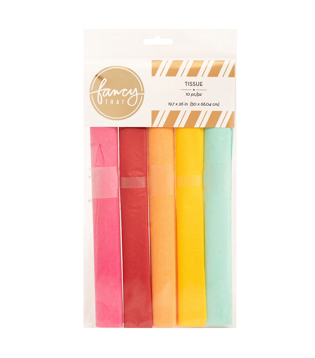 Tissue paper is the perfect filler for presents and gift bags! It can also be used to make accents for scrapbooks and handmade cards. Use it to create little splashes of texture and color for your projects. This package includes 10 sheets of bright tissue paper.