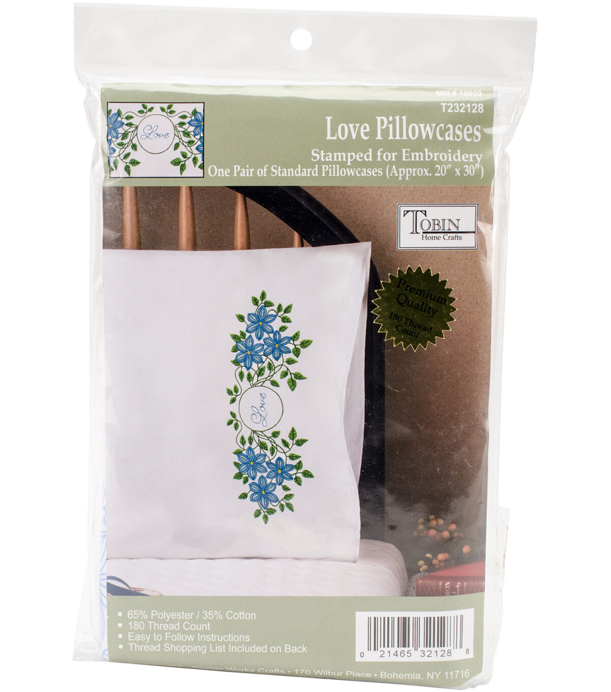 Embroidering on the Tobin Stamped for Embroidery Pillowcase Pair-Love is a great way to put your own creativity in a room. This package contains two 65% polyester/35% cotton pillowcases, 180 thread count, easy-to-follow instructions and a tread shopping list on back.