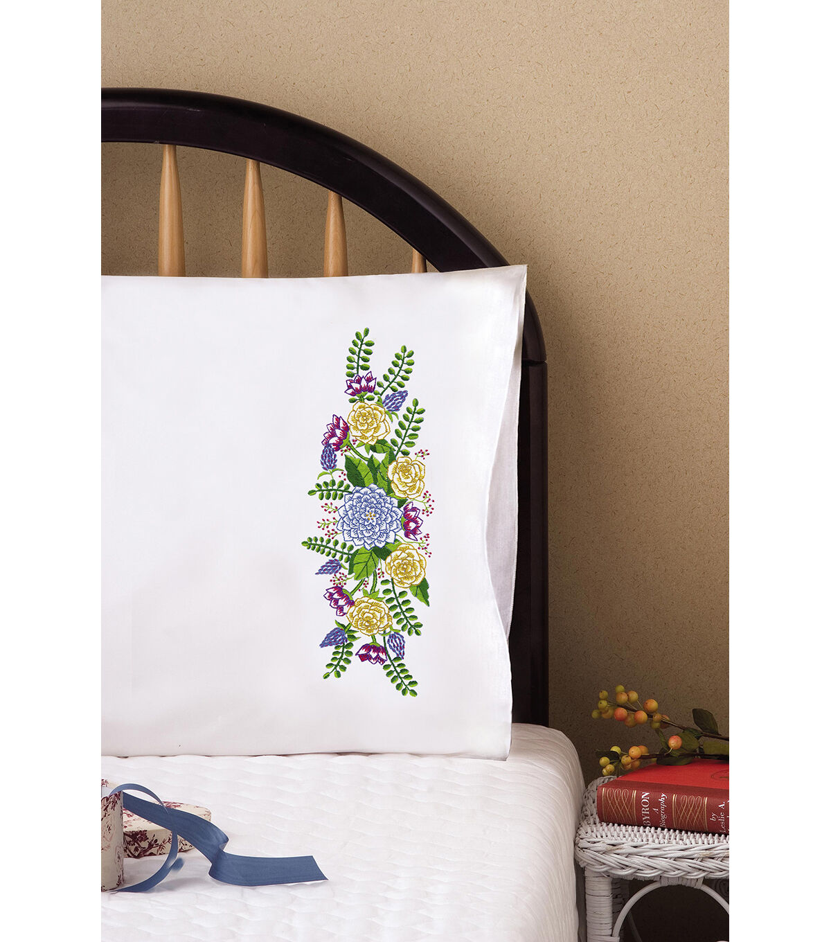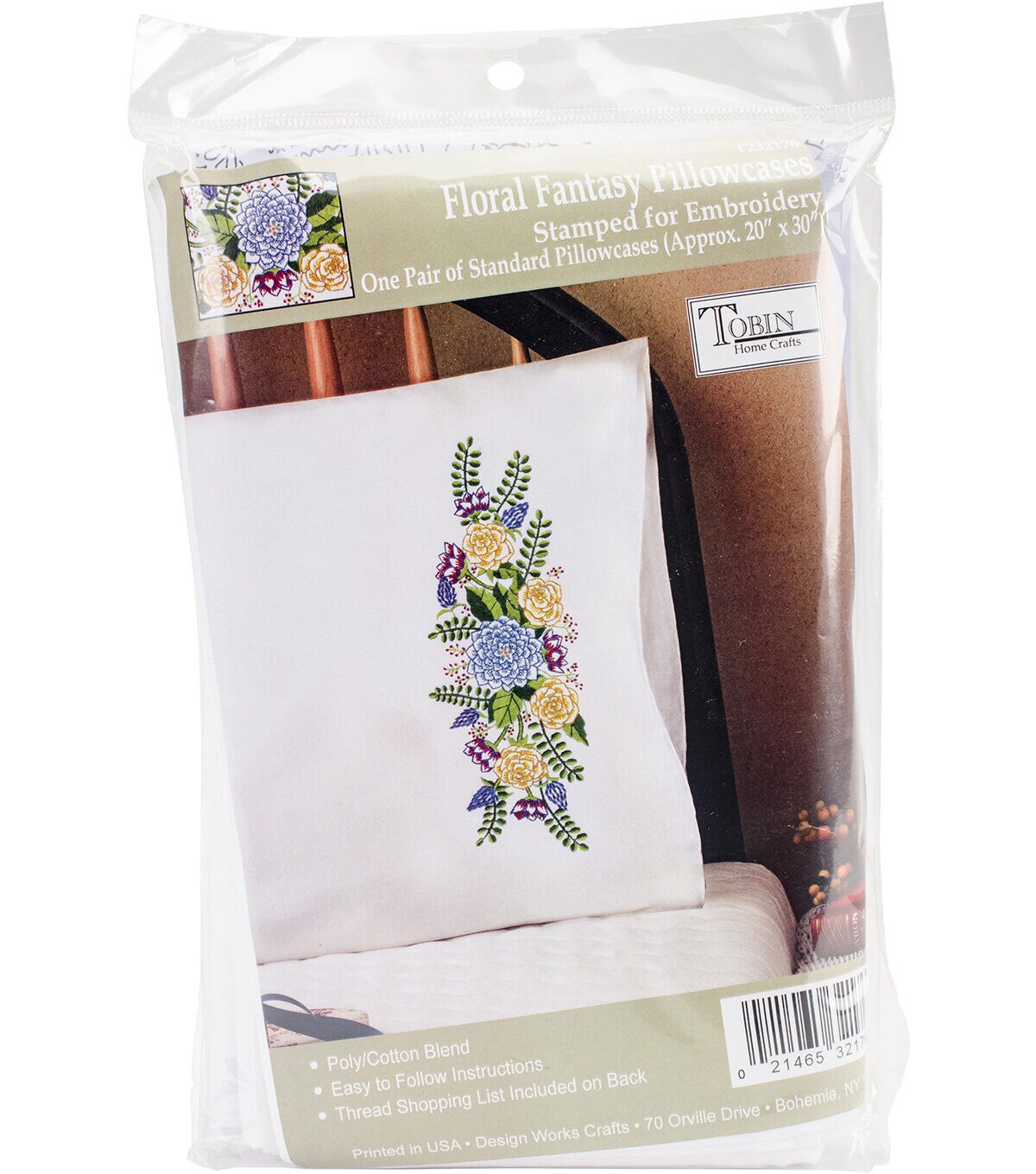 A great way to put your own creativity in a room! This package contains two poly/cotton blend pillowcases, easy to follow instructions and a tread shopping list on back. 180 thread count. Finished size: 20x30 inches. Design: Floral Fantasy. Made in USA.
