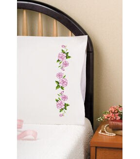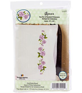 A great way to put your own creativity in a room! This package contains two poly/cotton blend pillowcases, easy to follow instructions and a tread shopping list on back. Finished size: 20x30 inches. Design: Roses. Made in USA.