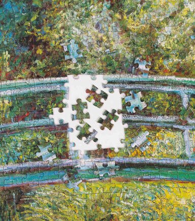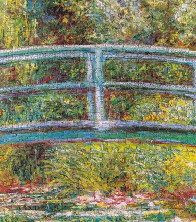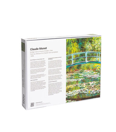 Dimensions : 50 cm x 70 cm 19.5" x 27.5" 1,000 pieces About Bridge over a Pond of Water Lilies For the last 30 years of his life, Claude Monet looked no further than his own backyard for inspiration, creating a series of approximately 250 oil paintings. Painted in 1899, Bridge over a Pond of Water Lilies represents two of his greatest achievements: his gardens at Giverny and the series of paintings they inspired.