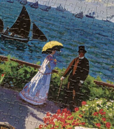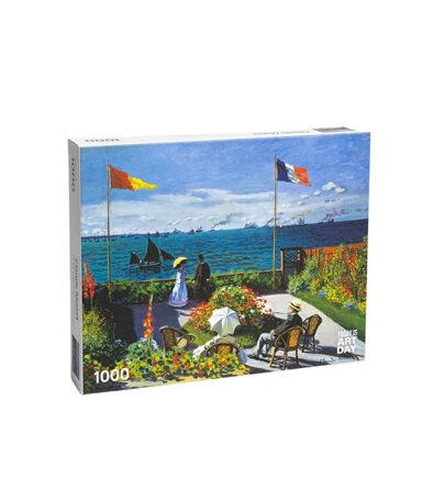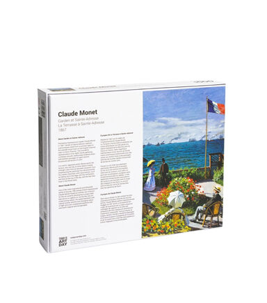Dimensions : 70 cm x 50 cm 27.5" x 19.5" 1,000 pieces About Garden at Sainte-Adresse Painted by Impressionist master Claude Monet in 1867, Garden at Sainte-Adresse captures a picturesque scene from a summer spent in the seaside resort town on the English Channel, near Le Havre (France). This wonderful representation of an idyllic family gathering combines smooth, traditionally rendered areas with brilliant passages of rapid, distinct brushwork and bursts of color.